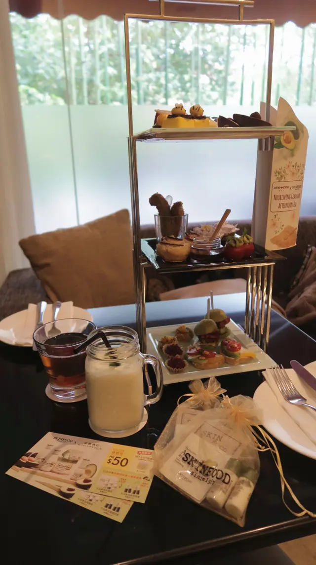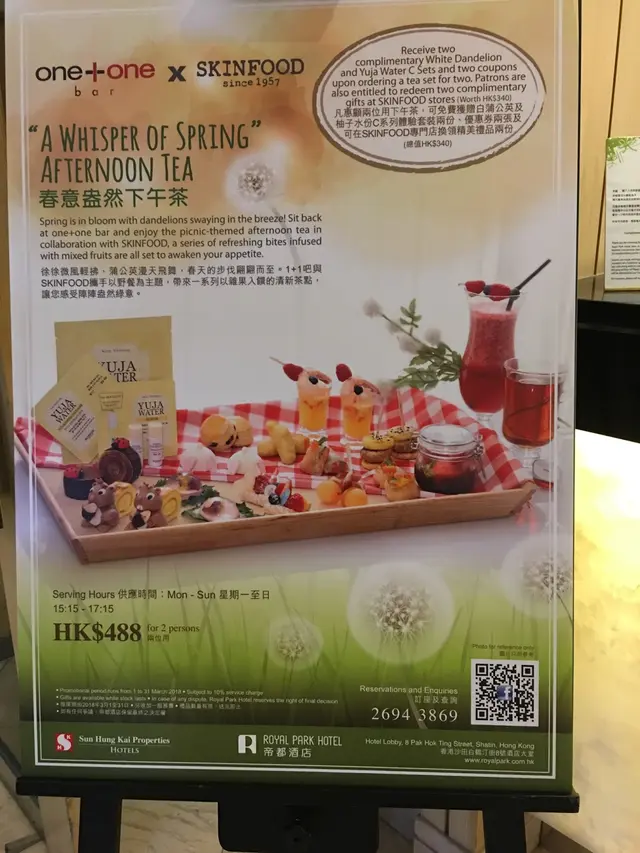 春回大地🌱,天氣漸漸回暖🌞,又係野餐嘅好時機,不過唔想咁遠去郊外野餐,去酒店都可嘆返個充滿春日野餐feel嘅Tea,舒適地感受一下春日氣息🌿帝都酒店 one+one bar推出左春意盎然下午茶!有別於傳統三層架嘅下午茶,以紅格子餐紙和木盤盛載12款鹹甜點,鹹甜各半,再加上兩杯特式飲品,茶點造型精緻,加入小動物、昆蟲、樹木等元素,好有春日野餐feel呢!細個已成日同家人去帝都酒店食自助餐,酒店同商場連通,真係非常方便就腳!🥂鮮果賓治海蝦串,海蝦非常鮮味可口,再配鮮果賓治味道更突出⭐️酥炸蜜瓜奶,平時炸鮮奶就食得多,炸密瓜奶就好少見👍🏻香煎芒果帶子伴蟹籽,最鍾意下午茶中有依類咸點,非常開胃🍽巴馬火腿蜜瓜啫喱串,平常食得多,但未見過加啫喱,口感特別👋🏻越式鱈場蟹肉米紙卷伴橘子汁,爽口、口感獨得,健康之選,蟹肉令整個卷提升🦀甜點中最吸引一定係呢兩隻小松鼠,賣相好得意,唔捨得食呢,小松鼠是整粒拖肥朱古力,而尾巴就是檸檬忌廉卷,味道就不過不失菠蘿椰子慕絲蛋糕,係可愛的兔子patpat造型,慕絲口感軟滑,好香菠蘿椰子味呢,味道不錯呢黑森林蛋糕,做到樹木的造型,加上迷你小甲蟲朱古力,賣相好可愛,好森林feel,外層是朱古力薄片,包著朱古力海綿蛋糕,朱古力濃郁,但幸好冇想像中咁甜鮮果綠茶酥,賣相精緻,鮮果加上綠茶cream,配搭不錯,而酥亦好鬆脆呢~水蜜桃水信玄餅,內裏有小花,好春日清新feel,味道較清甜,有d似大菜糕嘅口感P.S.呢個tea set是和skinfood聯乘的,食完仲有skinfood體驗套裝同優惠券可以拎走添☺️❤️…查看更多
