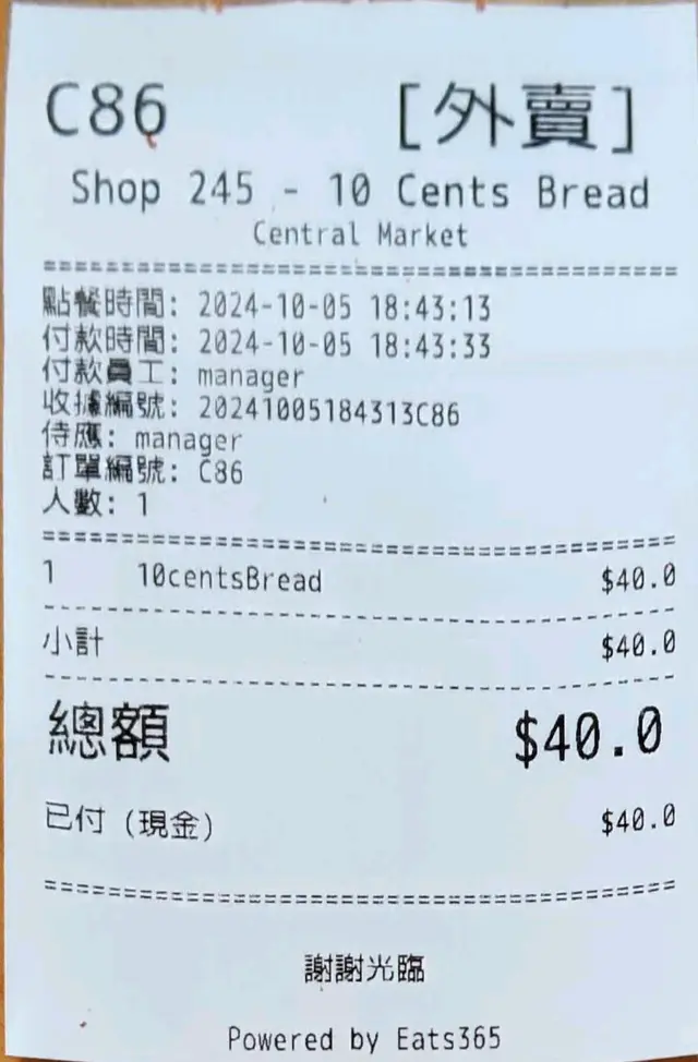 10分麵包 (中環) 網址: https://s.openrice.com/QrbS0lbuD00 地址: 香港中環皇后大道中93號中環街市2樓245號舖 電話: +852 61916222