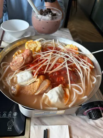 中午抽空放假,特登去咗銅鑼灣金朝陽中心2期嚟一場輕鬆午飯。呢度入口喺登龍街,電梯直上29樓,落地窗景靚到爆——望得出街頭車水馬龍,食飯都多咗份愜意。差不多中午12點半到埗,客流唔算爆滿,等咗10來分鐘就拎到位,午市限定1小時,夠晒趕得切。佢哋嘅午餐set超抵食,$61一蚊錢包晒一煲湯底(今日試咗個鮮甜嘅),再加埋飯或麵條(我揀咗拉麵,彈牙啱口),自選三款小菜,仲送一杯無酒精飲料——凍檸或熱茶隨你鍾意。煲底自帶新鮮配料:紅彤彤蕃茄片、脆生生生菜、甜脆粟米粒同埋嫩綠芽菜,煮落去香氣四溢,湯汁濃郁卻唔油膩。配埋一碟簡單小食,啖啖入味,食完精神百倍返工。喺呢個寸金之地,呢個價位食到咁正宗嘅火鍋lunch,簡直係難得寶藏!下次再嚟試埋其他湯底。👍…查看更多