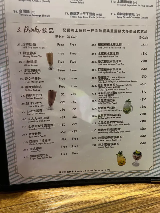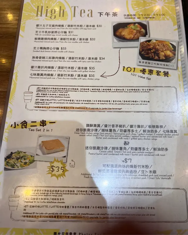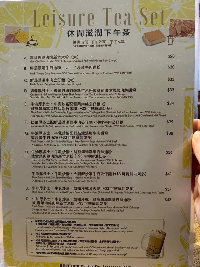 新界牛好少出TST,因工作關係出左去,想食台灣野,路過見到就入去,個下午茶⋯非常豐富☺️(抱歉未有影齊相)當日餓底,所以Upgrade左份多士有沙律、炒滑蛋、仲有個米粉,再加錢轉埋做特飲,都係$53埋單,食完飽到夜晚0個餐都唔使食!同意樓上 / 樓下 另一位網友所指,真係窮人恩物!呢個時勢,呢個地區,呢個份量,呢個價錢,真心係良心價呀!個野飲menu 都好吸引,好多杯都想試😄下次再出「省城」,都考慮翻叮多次👍🏻