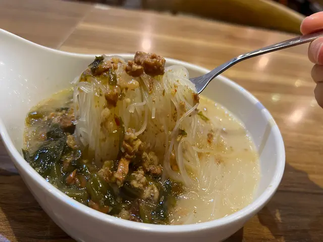 肉燥雪菜肉絲米(大)配 凍柑桔檸檬 $28好抵‼️今時今日呢個價錢真係唔知邊度搵🫨味道不過不失,同自己煮碗米粉差唔多,當然水準就唔高,但勝在有唔少肉燥同肉絲,下午茶嚟講好滿足😌至於金橘檸檬,同以往一樣都係偏甜,應該係整定嘅糖水。都係嗰句,咁嘅價錢包埋嘢飲,無得彈🤣