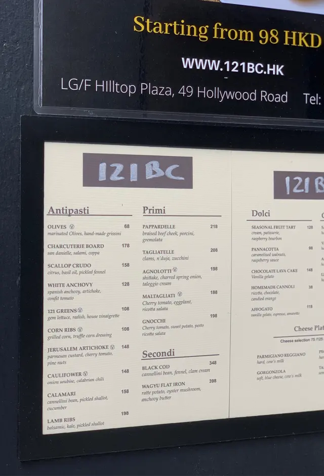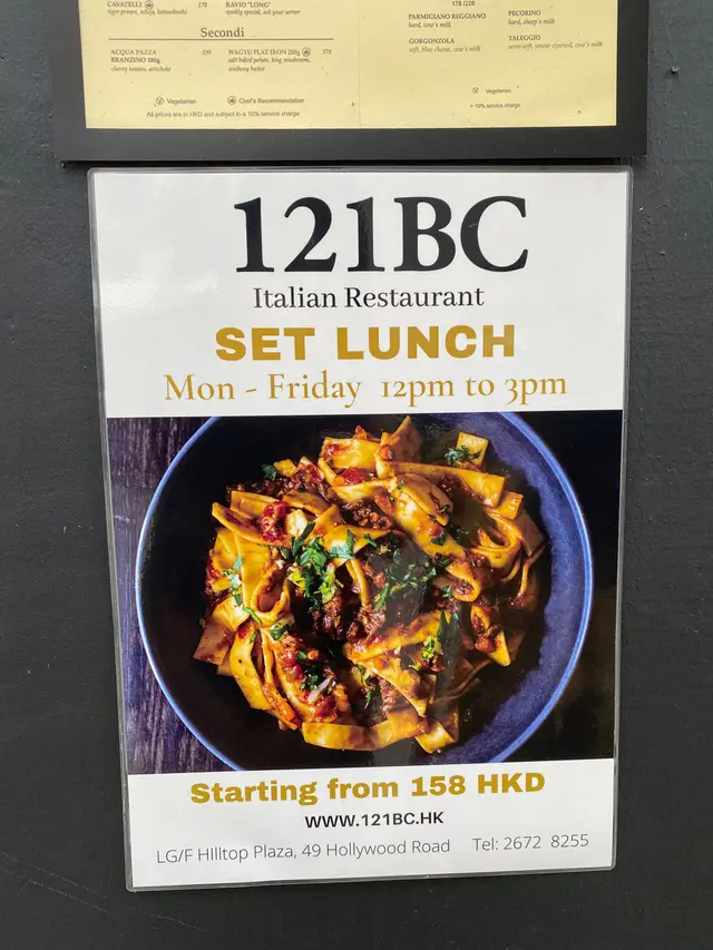 121BC (中環) 網址: https://s.openrice.com/QrbS0QnWA00 地址: 香港中環荷李活道49號鴻豐商業中心LG樓 電話: +852 26728255