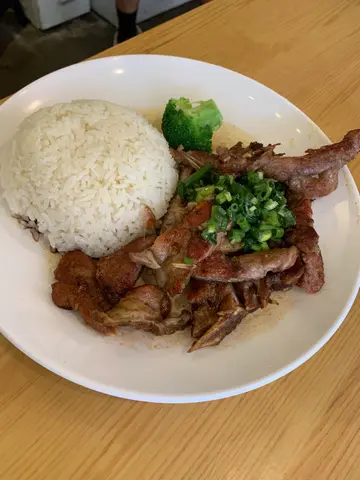 奔着推荐的辣沙龙虾过来,顶着大太阳终于找到~一家很小的店,就两三张小桌子吧,也不精致,有点乱~店员好像刚醒没什么笑容,而且我觉得打扫应该是在没有客人的情况下吧~所以,我换了是日推介~猪颈肉饭同埋菠萝柚子蜜第一次对食物很随意的拍了照,米饭不错,猪颈肉有点大块,有点难嚼,淋在猪颈肉上面的酸甜酱有点多吧…两根生菜看着都是蔫的~菠萝柚子蜜~我以为是有菠萝的,但其实就是柚子蜜冲泡的