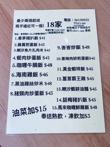 18家 (元朗) 網址: https://s.openrice.com/QrbS0Dpm900 地址: 香港元朗教育路81至85C號元達樓地下6號舖 電話: +852 26130222