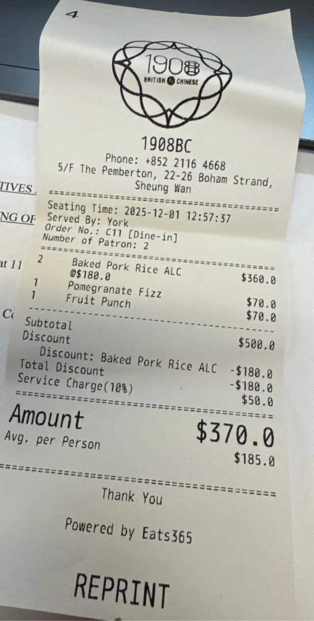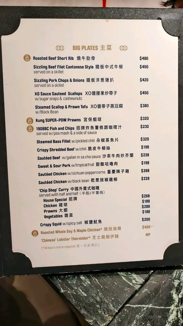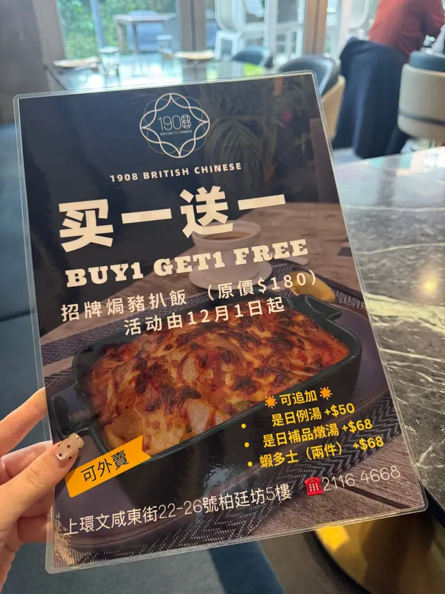 1908bc British Chinese (上環) 網上訂座享低至75折優惠兼賺Rice Dollars 網址: https://s.openrice.com/QrbS0CUqA00 地址: 香港上環文咸東街22-26號柏廷坊5樓 電話: +852 21164668