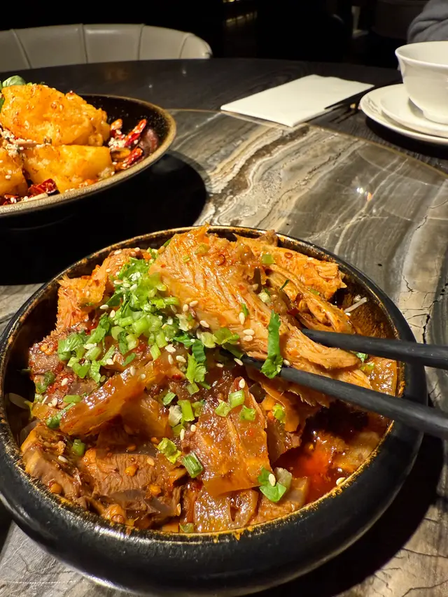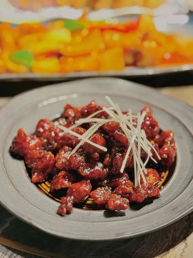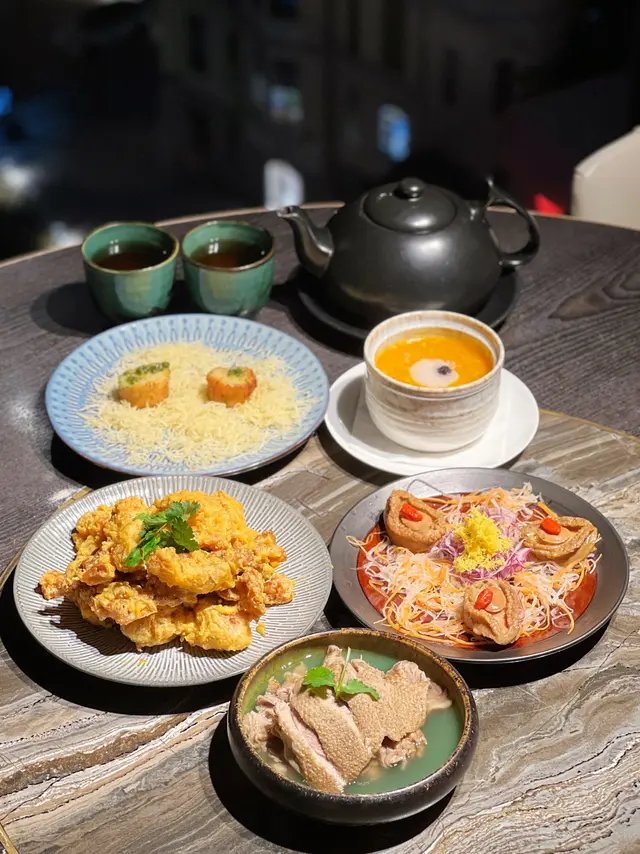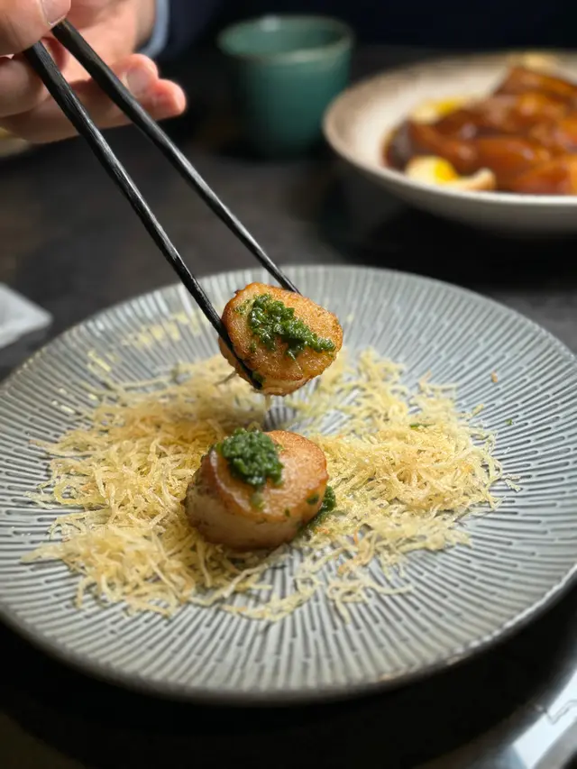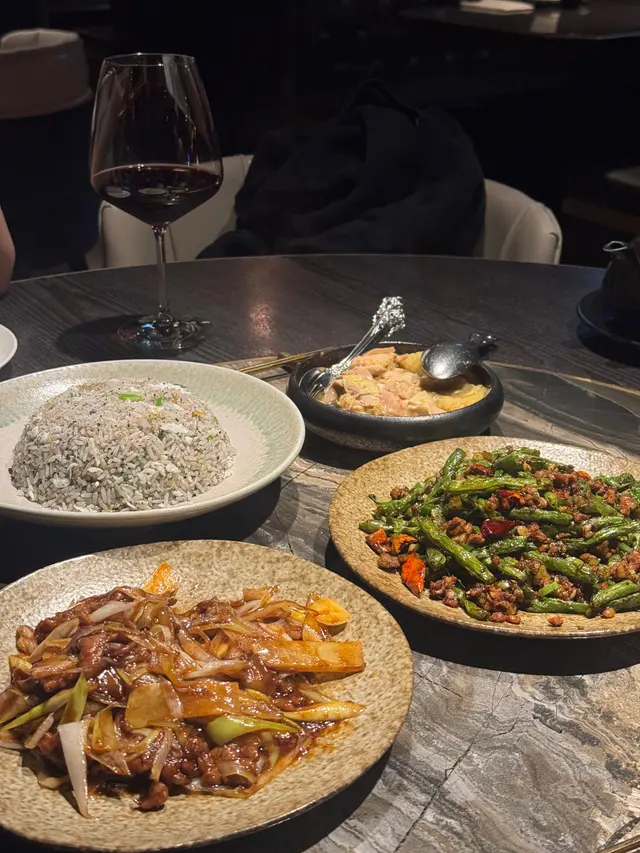 環境安靜 而且非常舒服🥰 非常適合同朋友嚟聚餐傾下計~|花雕醉雞冰鎮得宜 雞肉嫩滑 花雕酒香同雞肉脂香相互滲透 好適合做前菜開胃🙂↕️|蔥爆牛肉牛肉油脂豐厚 蔥香濃烈 口感偏重 適合鍾意食比較濃味嘅人🤓|乾煸四季豆火候控制得準 外脆內爽 微辣蒜香非常惹味 係全場最驚喜嘅小炒🤤|松露瑤柱蛋白炒飯炒得乾身分明 瑤柱鮮味突出 松露增添高級感 不過稍為搶咗蛋白清香 但整體依然好食🥹The Drunken Chicken was well-chilled, with tender meat infused with both the Huadiao wine’s aroma and the chicken’s natural richness—perfect as an appetizer. The Stir-fried Beef with Scallions was rich and bold, dominated by strong scallion fragrance and beef fat, ideal for those who enjoy heavier flavors. The Dry-fried String Beans were the standout, cooked to a perfect balance of crisp outside and tender inside, with a garlicky, mildly spicy kick that made them addictive. Finally, the Truffle and Dried Scallop Egg White Fried Rice was light and well-separated, with prominent scallop umami and a touch of truffle luxury—though the truffle slightly overpowered the egg white’s subtlety, it was still very appealing overall.…查看更多