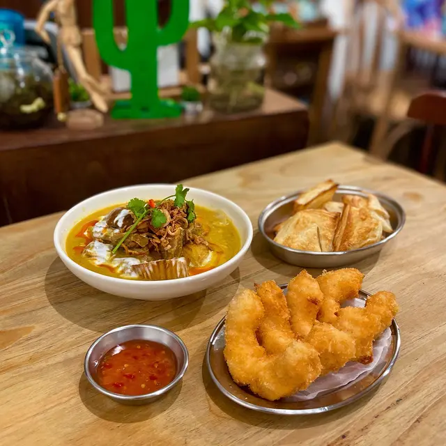 疫情嚴重好多時候都係買外賣返屋企食 但係喺屋企食都可以食得好開心 最緊要係食物質素有保證呀嘛😀 今日就嚟咗觀塘嘅工廠大廈買外賣 之前都食過呢間泰國嘢 外賣自取有九折㗎 咁就更加抵食啦小食拼盤兩件蝦餅 每件蝦餅呈半月型🌙 炸到外脆內軟 蝦膠好彈牙 兩件魚餅切開成四件半圓型 兩件春卷 切成四件 入面主要係蘿蔔絲同椰菜絲 同埋有四件泰國雞棗 有個腐竹外皮包住雞肉餡 都好脆口🐥大蝦炒金邊粉大蝦真係好大隻 而且蝦肉好彈牙 連配料花生粒青檸同埋蔥都有喺度😮 基本上同堂食冇乜分別泰式蟹肉炒飯略嫌呢碟飯唔夠鹹 蟹肉粒都幾多㗎 由於飯入面有蛋白 所以望落有啲似港式嘅瑤柱蛋白炒飯😂青咖哩雜菜青咖喱其實好好送飯 但係個人覺得浸住烚菜嚟講 有啲太重口味🤣 所以我就唔係好鍾意呢碟餸啦整體來講泰式食物價錢本身唔算太平 由於外賣自取嘅關係 令到我哋可以用咁平嘅價錢食到優質嘅食物😌 絕對係更加抵呀…查看更多