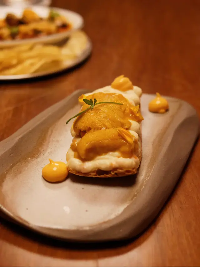 屬於朋友俾我既生日驚喜 兩個人係PMQ裡面捐窿捐罅左一段時間先搵到路一入門口已經見到西班牙Signature的圓拱門設計 同埋colorful既紅綠交替墻身 燈光色調溫和加上店內用餐大部份都係外籍客人 同店員溝通都當然係需要全英 所以感覺去左第二個國度咁 短暫逃離一下煩囂既城市 未坐底已經好有好感一開始我地對餐牌感到迷茫 女店員主動approach並講解Menu菜式朋友詢問佢好想嘗試既Percebes海螺藤壺 店員都詳細解釋捕獲呢種食材係十分危險 所以不常有供應最後我地按照店員推薦order左4個菜式Oyster Ajoblanco生蠔新鮮肥美 上面鋪滿酸甜調味的紅綠爆珠珠 十分開胃的前菜Rubia Tartare牛肉他他 看似普通但好有驚喜 麵包焗得啱啱好 外脆內軟Canary Grilled Octopus 餐廳ig page經常會出現既菜式 果然好出色 八爪魚肉質軟嫩唔太需要用牙力咬 帶點炭烤風味 三種醬汁調味完美 可以不斷交替點唔同醬食 好好食!必叫PaellaPaella似乎每日的配搭都會唔一樣 當日我地大概8:00到達 其實好多選擇已經soldout最後我地揀左三黃雞同蝦 米飯口感很接近意大利燴飯 其餘方面都不過不失 冇特別記憶點但都冇乜好挑剔最後店員捧出朋友預先準備俾我既生日蛋糕同埋佢地送既甜品布丁 布丁好凍冰冰 對比啱啱食完熱辣辣Paella 食到好開心好sweet