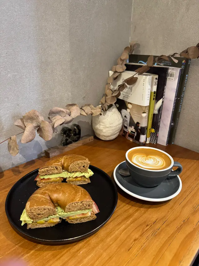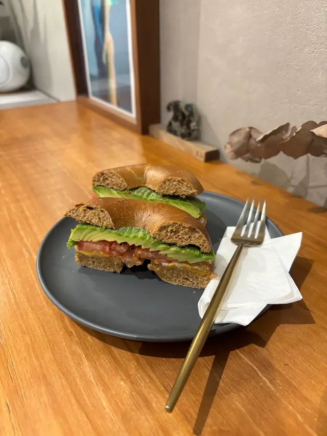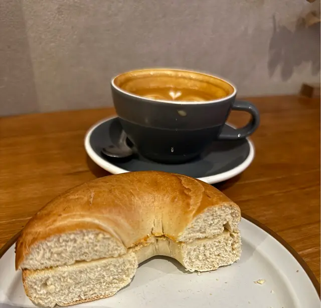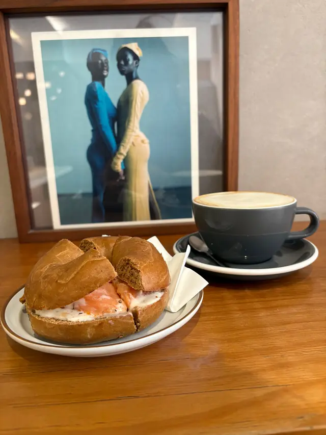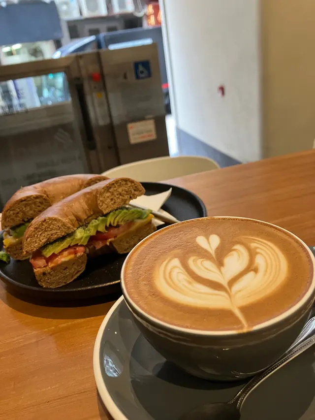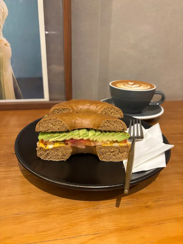 Avocado cheese bagel & Flat white