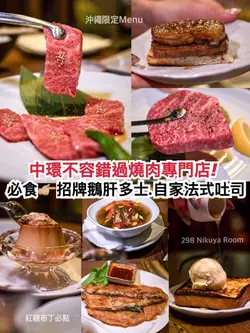 日本,是我最喜歡旅遊的國家,數算那裡已到過了很多的地方,唯獨是沖繩,我至今還未去過。沖繩料理充滿著鄉土情懷,一年前與女兒在香港已嚐過由地道沖繩人親自主理的沖繩料理,其中一味鄉土名物 - 苦瓜炒,至今仍記憶猶新。298 Nikuya Room 是一間專門吃日式燒肉的餐廳,開在中環士丹利街已一段長時間。今天晚上,女兒知我念念不忘沖繩的美食,說這店最近推出沖繩限定menu,就約了我今晚來這裡嚐嚐和吃這店的日式燒肉。餐廳環境有點西式,樓底算高,因此沒半點滿場燒烤的味道,今次對著調酒吧檯坐,一面看著調酒師調酒一面燒烤也是我的第一次體驗。女兒知我喜歡沖繩美食,首先點了開胃前菜 - 沖繩苦瓜牛肉他他。牛肉是和牛級數嫩滑得來不需嚼勁及以條狀上桌,大口吃就非常之爽。唯獨是苦瓜的份量就略嫌少一點了,畢竟沖繩苦瓜應該才是這碟的主角吧。再來一杯沖繩柑橘梳打透心凉的感覺,為以下的燒肉先打頭陣。今晚當然醉翁之意不止在沖繩美味,主角是日式燒肉之旅。這店的燒肉論質素和份量,講真不算貴。厚切牛舌($165)選自舌芯,一條牛舌,切不到很多舌芯給你,就知道價錢是非常之合理。牛舌燒到焦香,内裡還是軟彈,舌芯就有這樣的優處。鹽燒厚切和牛西冷($190),看圖就知性價比如何過人,肉身遍佈均匀的油花,入口即溶化,這個價錢有這個質素,在鄰近的日式超市確是找不到。和牛崩沙腩($210),我極力推薦這個崩沙腩給燒肉控們,有口感有肉味,加一口日本米飯,當做和牛壽司,是不得了的吃法,增添更多燒肉的體驗。豚肉福袋($120)裡包入了韓國泡菜,豚肉也是高質,燒香後肉身仍然是非常嫩滑。最後還點了海鮮煎餅,脆口得來裡面充滿海鮮,非常香口好吃。總結這一餐燒肉之旅,吃完就知女兒確沒介紹錯,能屹立中環超過十年的日式燒肉食肆,這店無與倫比的食物質素和價錢,是能存在至今的確據。…Read More