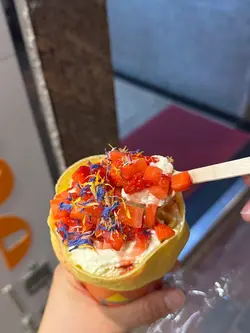 呢一間喺大角咀嘅可麗餅已經成日見到IG好多人推介,因為佢係主打日式可麗餅,有咸都有甜,不過我就緊係要食甜啦🤣佢哋嘅選擇都有好多,好似士多啤梨都有分幾種可以揀🍓相信有選擇困難症嘅人都好難落到決定。🐒士多啤梨甜可麗餅💰$49🐒粒粒芒果冰茶💰$30佢哋全部crepe都係即叫即整,望住個店員係到即刻煎都好治癒☺️而食到落底我都仲食到啲cream,士多啤梨同吉士,真係好真材實料👍🏼而因為個皮都好薄,所以食哂成個都無話好膩既感覺,反而係會有衝動想試埋佢地既其他系列今次除咗試咗佢地既crepe之外,仲有試埋佢哋嘅芒果冰茶,雖然無得揀甜度,但其實飲落都唔會好甜,食到一半飲翻啖都好舒服😌下次我會試埋佢地signature既焦糖吉士味🍮…查看更多