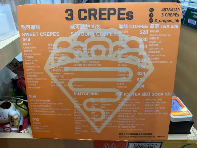 3 CREPEs (大角咀) 網址: https://s.openrice.com/QrbS0GC4B00 地址: 香港大角咀博學里3號富多來商場第一期地下1號舖 電話: +852 46784130