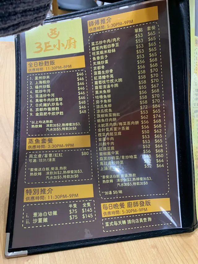 抵食夾大份嘅茶記 yummywinwin等級42022-05-141K 瀏覽 關注 以前入過港安醫院,只得素食餐單好多人都叫外賣,當時如果有3e就好啦~位於山腰斜路位,晚市幫襯過幾次小菜套餐,食物份量大夠食有餘,打定電話落單即炒,10至15分鐘就拎到呢日lunch叫2份碟頭飯外賣,乾炒牛走咗芽菜份量仲有咁多,食到底唔會成盒油,粟米汁滿瀉啱晒鍾意汁撈飯嘅香港人!…查看更多以上食評乃用戶個人意見 , 並不代表OpenRice之觀點。3分享抵食夾大份嘅茶記 3E小廚 https://s.openrice.com/QrbT0jED200檢舉 張貼 評分4味道4環境5服務4衛生5抵食用餐途徑外賣自取