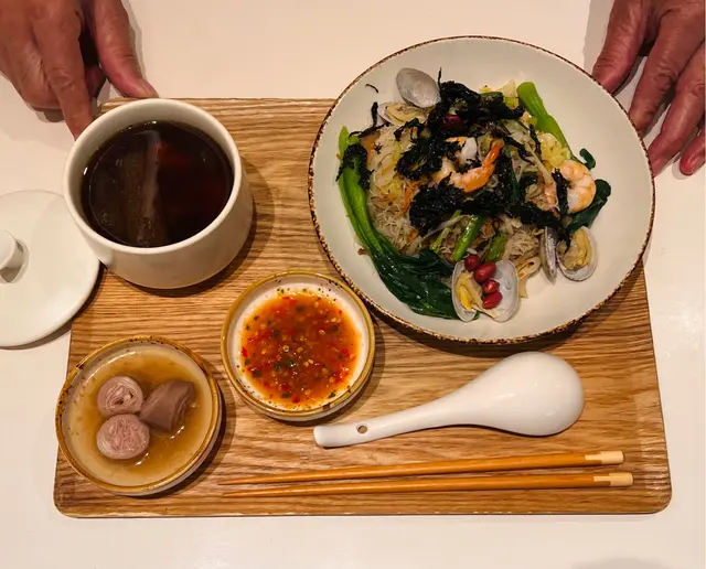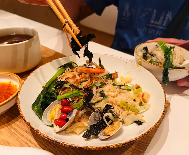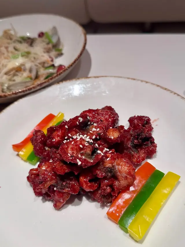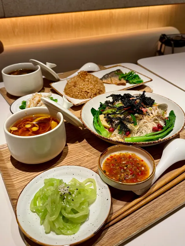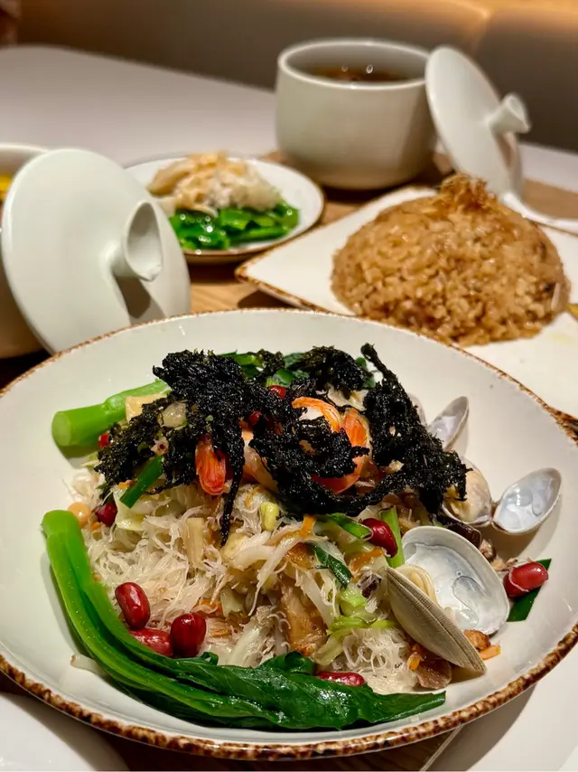 IFC有唔少精緻餐廳,呢間4口主打新派福建菜,嚟到秋天更加有時令鰻魚menu。午市套餐價錢親民,啱晒一種打工仔放飯。鐵鍋照燒鰻魚飯套餐 $168套餐配一款自選小菜同燉湯,中環嚟講算係性價比高。鰻魚飯用熱燙鐵鍋上枱,熱辣辣香噴噴。鰻魚以中式手法處理,味道食落有d似鱔糊。鰻魚肉質厚實爽彈,照燒醬汁甜鹹適中。鹹香酥炸黃花魚小菜嘅酥炸黃花魚份量雖然唔多,但炸到連骨頭都非常酥脆香口,啱晒送飯。青醬焗鰻魚 $88中西fusion嘅做法去炮製鰻魚,鰻魚焗完再炸,外脆內嫩,喺底嘅羅勒青醬味道非常清新,覆蓋喺鰻魚上面一齊食就可以減低油膩感。黑松露蘆筍炒帶子 $178帶子水嫩彈牙,味道鮮甜,火候掌握得啱啱好。黑松露醬味道香濃,蘆筍清脆無渣。黑椒鳳梨牛仔骨 $148用咗帶骨牛小排,肉質腍嫩。黑椒醬汁味道十分濃郁,加埋酸酸甜甜嘅鳳梨同大量洋蔥爆炒,夠晒惹味。蟲草花淮山燉雞湯/黑蒜粒竹笙燉雞湯 $58套餐本身包咗盅燉湯,不過因為我哋兩個人就再叫多咗盅。燉湯顏色清澈,味道清甜醇厚,而且非常足料,有飲緊住家湯嘅感覺。椰奶銀耳燉桃膠 $58我哋最後仲叫咗碗燉桃膠作為甜品收尾,椰香奶滑,加埋銀耳、桃膠增添口感,甜度適中。。。4口 (中環)中環金融街8號國際金融中心商場2樓2012號舖。。…查看更多