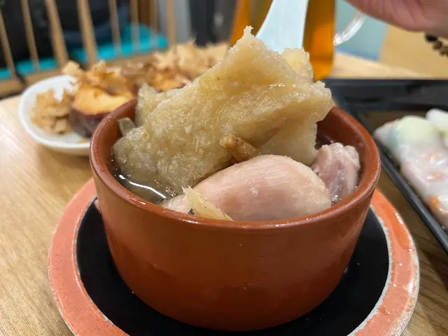 放工想嘆一盅兩件 近近地喺元朗搵到間點心專門店餐廳位於元朗廣場附近 望望營業時間至晚上十時 又係一個可以嘆夜茶嘅好地方😌🔸蟹籽燒賣皇 HKD19燒賣有成半個拳頭咁大粒😳豬肉同蝦肉比例均勻 真材實料!🔹黑松露野菌粉果 HKD21菇菌包括鮮冬菇金菇雞脾菇 黑松露味同菇菌好夾!🔸蒜蓉粉絲蒸排骨 HKD29排骨蒸熟後依然嫩滑粉絲索晒蒜蓉同肉汁好惹味!🔹原盅花雕養顏棉花雞 HKD38陣陣花雕酒香 有陣食醉雞嘅感覺棉花索晒花雕酒同雞嘅精華好好味😋🔸雜果沙律春卷 HKD26呢度用上春卷皮包所以特別脆口新鮮炸起嘅沙律卷真係令人抗拒唔到🤭🔹鴛鴦鮮蝦米網腸 HKD36蝦腸變成橙色同綠色 賣相相當趣緻腸粉中間夾咗層脆米網同鮮蝦 層次豐富🔸花旗蔘燉竹絲雞湯 HKD46燉湯有四款口味 今次揀咗花旗蔘竹絲雞湯用汽鍋呈上 可以保留湯嘅熱度 原汁原味花旗蔘味甘甘地 加入鮮雞湯 感覺好養生🤫人均消費💰大約$110/位🚩8號茶居 元朗擊壤路17號順發樓地下H號舖…查看更多