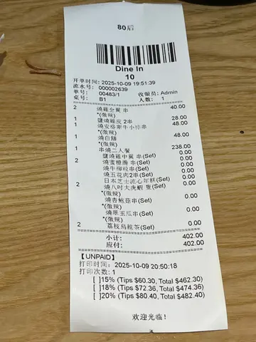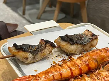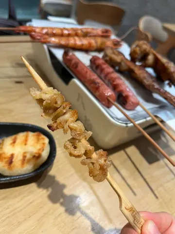 今日出旺角行完街留意到呢間新開嘅港式串燒店,見唔係咁肚餓,就試一試佢嘅串燒。睇舖名<80后串燒>就feel到呢間串燒舖好有個性同活力,而佢嘅裝飾都好有滿滿嘅香港特色。串燒二人餐 ($238)鹽燒雞中翼 1串鹽燒厚切牛舌芯 1串燒豬頸肉 1串燒蜜糖腸 2串墨魚咀 1串燒白鱔 1串燒翠玉瓜 1串燒四季豆 1串飲品兩罐,揀左王老吉同可樂。雞中翼雞皮燒得香脆,咬落仲充滿肉汁,調味剛好,唔會過咸。厚切牛舌彈牙有爽脆口感,但同時亦滿有油脂感,表面燒得焦脆香口,配埋佢呢度自家辣粉,非常惹味。燒豬頸肉夠juicy,燒到邊邊位有啲香脆。燒蜜糖腸正常墨魚咀 1串幾易咬到,細細粒好易入口。燒白鱔魚皮燒到香脆,魚油爆滿整個口腔。燒豬仔脾 2隻燒豬仔脾燒完肉質唔會好乾,仲食到連埋少少脂肪嘅油脂感。燒薯仔片 2串個人推介嘅其中一款食物,經過燒烤嘅薯仔keep到表面香口但咬落濕潤,加左惹味辣粉令人食唔停口。燒饅頭 1串饅頭燒到表面酥脆,裡面keep到柔軟,配埋煉奶食一流。蜜糖司華力腸 原條司華力腸加埋甜甜蜜糖做燒烤,腸衣十分香脆,腸肉結實,口感豐富,層次分明。呢度啲串燒價錢真係幾平,食下串燒飲下其啤會係幾爽。…查看更多
