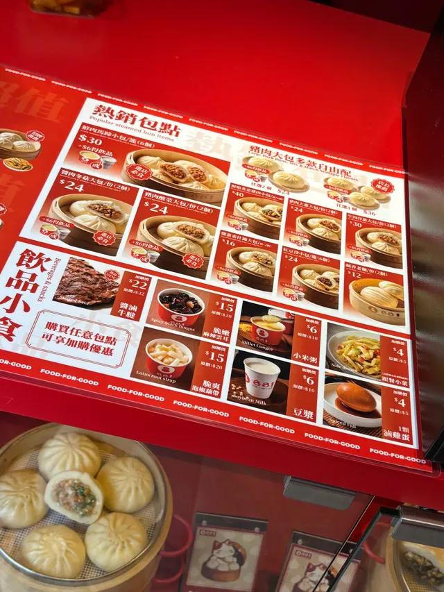 旺角鬧市超抵食,881超值套餐 $37有豬肉大蔥大包1個、鮮肉馬蹄小包3個、滷蛋、豆漿 ,仲有醃蘿蔔包嘅餡料都幾多,仲有肉汁,包皮又唔厚又夠鬆軟滷蛋夠哂入味,仲要滷到啱啱好,雞蛋唔會滷得過長時間死實實豆漿夠濃夠豆味,有誠意醃蘿蔔夠哂入味又夠爽脆舖頭係外賣店,近朗豪坊,可以隔住玻璃睇到師傅喺度整包,日日新鮮製造,即叫即蒸,食落唔似香港嘅叉燒包嘅包,應該比較似北方包子,有誠意,仲好抵食店員超親切,介紹套餐又推介咩好食👍🏻