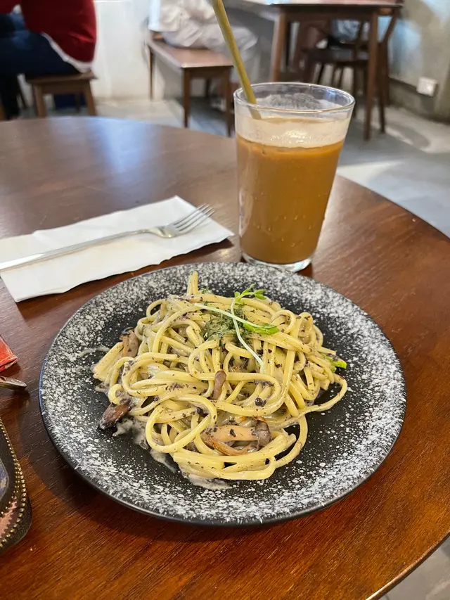 你間餐廳一入去就已經好舒服 我係晏晝去嘅所以唔算多人 嗰時待應帶咗我哋去一個偏向角落頭嘅位 我哋四個女仔一齊坐都幾開心相對安靜啲 不過唯一唔好就係有啲熱因為間餐廳係有啲陽光嘢食方面我覺得都相對抵食 叫咗兩個煮食一個小食四杯嘢飲每人都係百幾蚊 嘢食都好食嘅 而且可以坐好耐可以慢慢傾偈😽嘢食方面叫咗一個意大利飯同埋一個意大利粉 個名係乜唔記得啦但係兩樣都幾好食 夠熱而且好夠味 好夠忌廉味😂 個小食係有雞翼同埋薯條兩樣都炸得好脆 最後每人$150左右我覺得好合理☺️🙏🏻 如果係為咗嘢食而去嘅可能就會有啲失望 但係如果你想搵一個舒服嘅地方可以傾偈嘅就非常之適合!