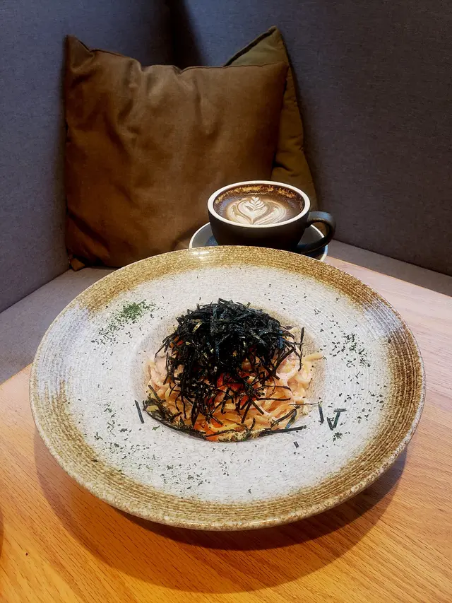 旺角行到攰攰地,經過見到樓上有間西餐廳,見到餐廳名都幾得意於是就上去嘗試,見環境開揚,入去角落位置有長梳化位,打卡都一流,之後叫咗兩款主食,軟殼蟹意大利粉,軟殼蟹炸打得好鬆脆,食落唔覺好多粉,意粉就偏軟少少,如果硬多d有口感就會好食啲,另一主食黑松露明太子意大利飯,明太子煎得剛剛好,唔會太韌內面還有暖嘅感覺,唔錯,但飯睇上去不似用意大利米,疑似用珍珠米,有少少失望,但黑松露調味非常不錯,呢度行過可以chill一下都不錯