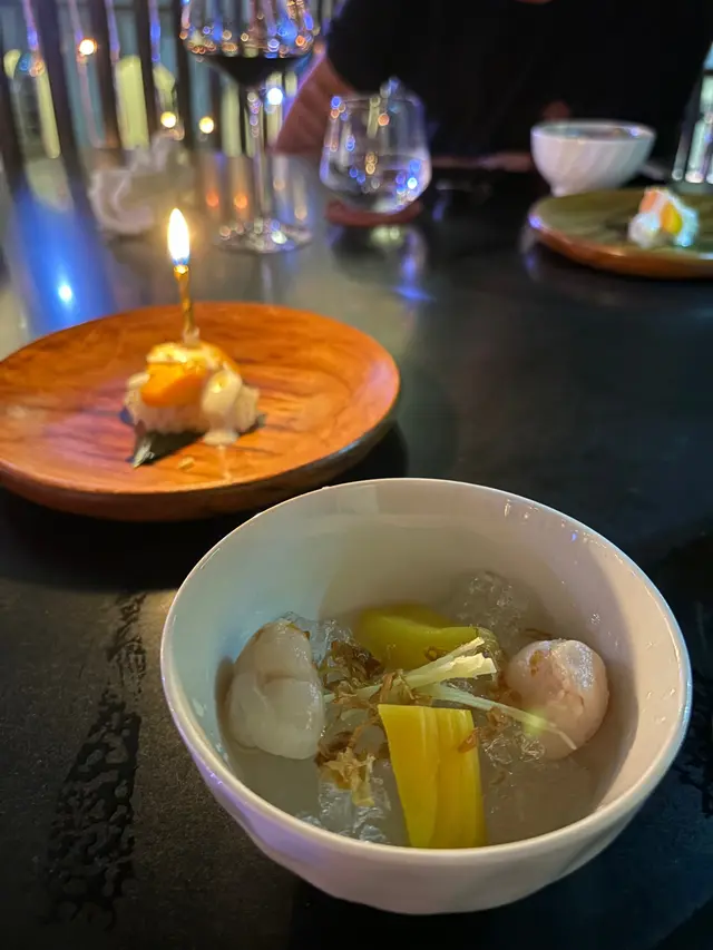 It was my birthday. The manager offered us a balcony seat so we could enjoy a nice view to watch the Christmas night show (every 30mins).I ordered a vegetarian tasting menu. The staff introduced the dishes and taught us how to eat in order to get the best flavour and texture. If you like extreme taste of spicy, you will definitely love the dishes.At the end they made me a mango sticky rice birthday cake! How sweet they were!I want to say thank you to the staff. They were so friendly of course especially the manager, he was a very funny guy. We love to talk to him.Definitely will visit again!…查看更多