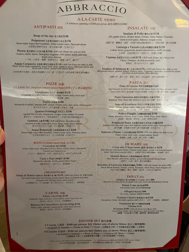 餐廳環境令人感覺好舒服,柔和嘅燈光,座位好寬敞,拍拖一流🥰仲有個落地玻璃可以睇到廚房製作pizza嘅過程。Dinner Set 晚市套餐 $498 一個嘅 4-Course Dinner ~ 1 Antipasti or Insalata + 1 Pizza or Pasta + 1 Carne or Di Mare + 1 Dolci。📌Poloettoni自家製安格斯牛丸牛丸嘅口感好紮實,有好牛味,配合巴馬臣芝士同蕃茄醬,味道好夾。📌呑拿魚Pizza🍕Pizza底餅係廚師即場搓,傳統薄脆餅底,有炭香味,做到拉絲效果,吞拿魚的鮮味與芝士的濃郁結合,口感豐富。📌Filetto牛柳(250g)我哋揀咗五成熟,口感極為軟嫩,肉質細緻入口即化,配搭阿根廷青醬同芥末醬,可以有兩種唔同既味道。大蒜裏面嘅蒜頭超軟加埋橄欖油,帶出少少甜味,做得好好。📌Tiramisu咖啡酒香濃郁,濕潤度啱啱好,帶少少可可粉嘅微苦,層次分明甜度啱啱好。…查看更多