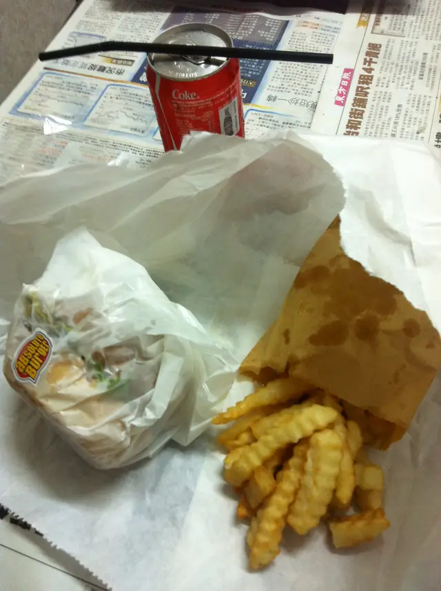姐姐週六用了團購優惠, 買了一個雞扒漢堡套餐(HK$29)回家. 套餐包括雞扒漢堡, 薯條和一罐可樂. 薯條賣相不太討好, 竟然用黃色雞皮紙袋裝著, 由於是外賣的關係, 薯條已經放涼了和淋了, 故未能客觀地品評其味道. 反而想集中評論雞扒漢堡, 其size也不少, 沒有因團購而偷工減料. 上下層的麵包也烤過, 不錯. 用上的麵包是較為亮面的一種, 跟其他的店舖不同, 咬下去是很軟熟的, 質感也較為滑, 味道也較香, 很好. 那塊雞扒也煎得夠香, 也有肉汁, 加上沙律醬, 生菜, 味道果真不俗. …查看更多