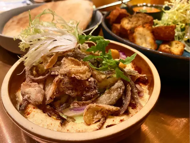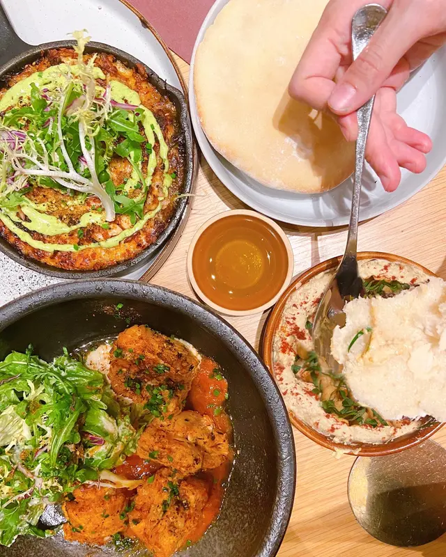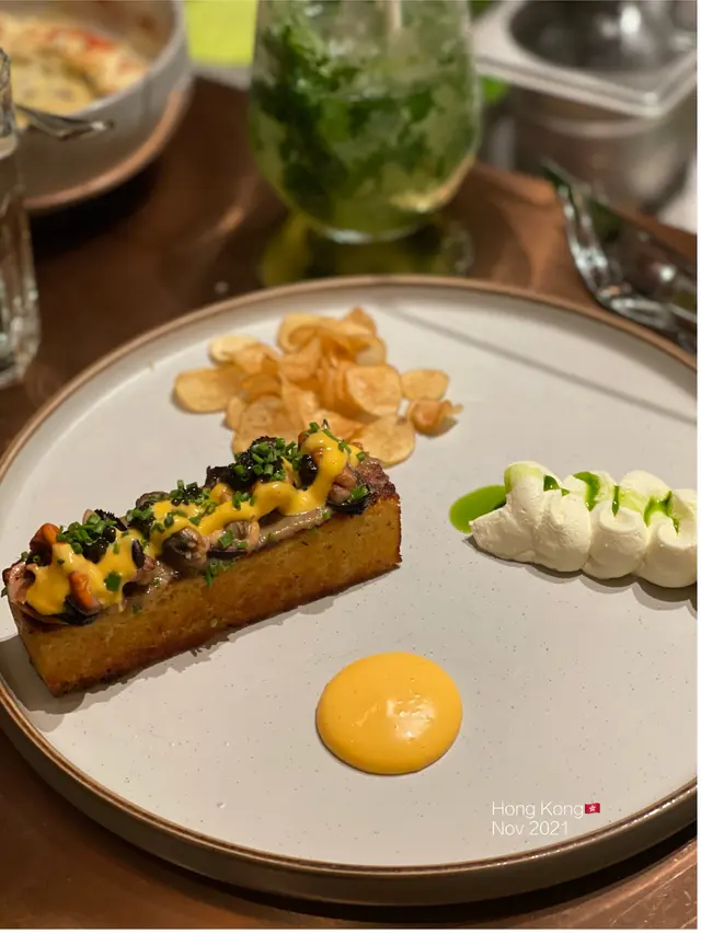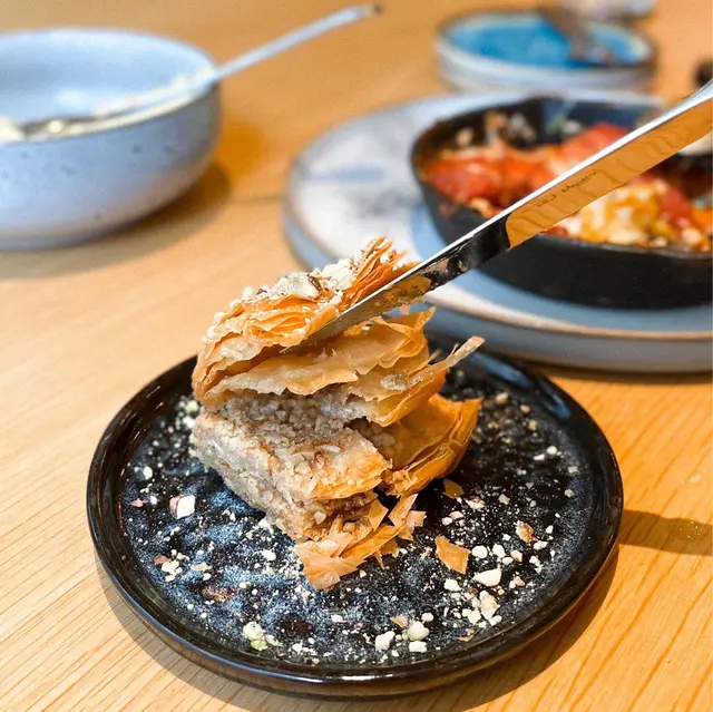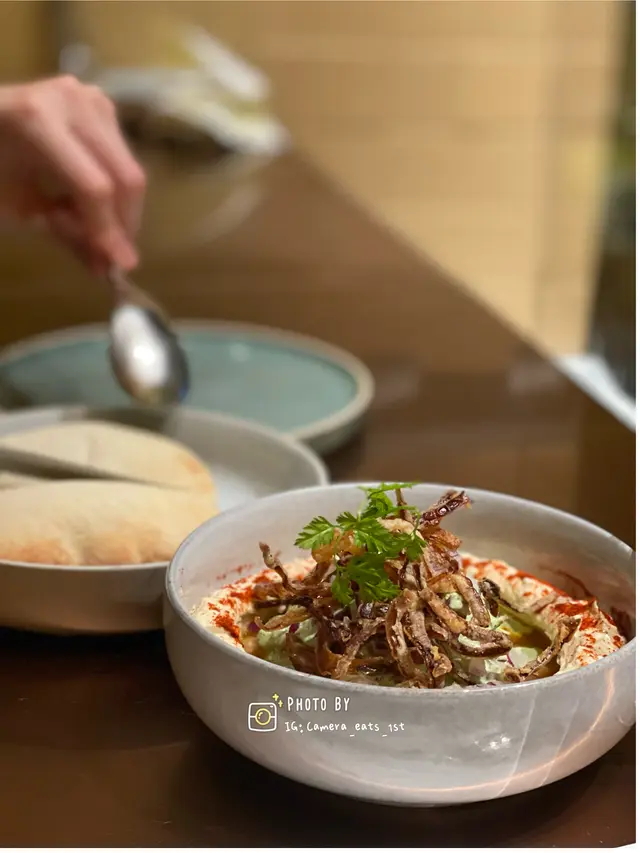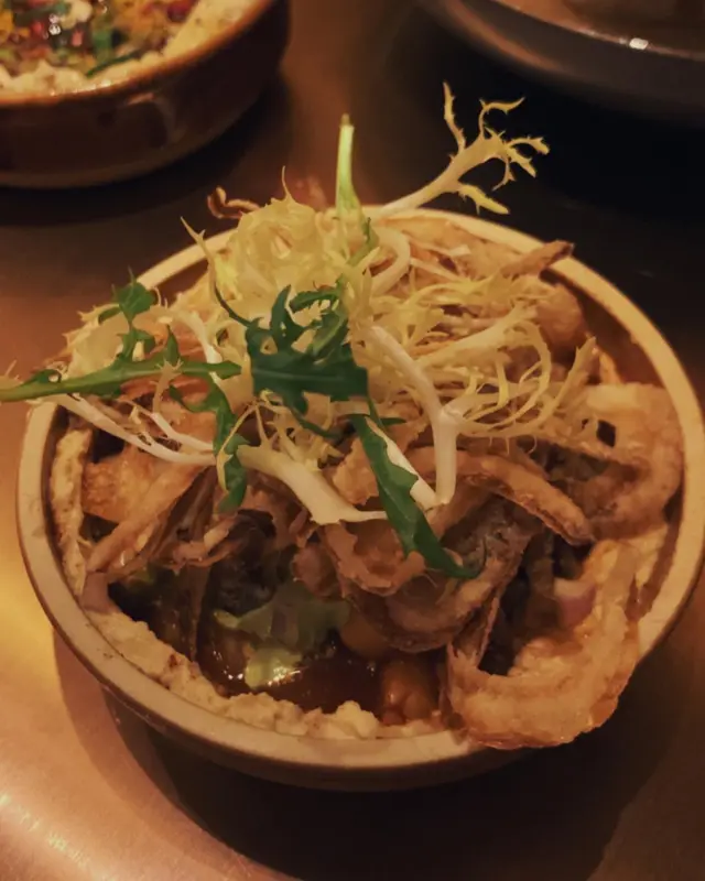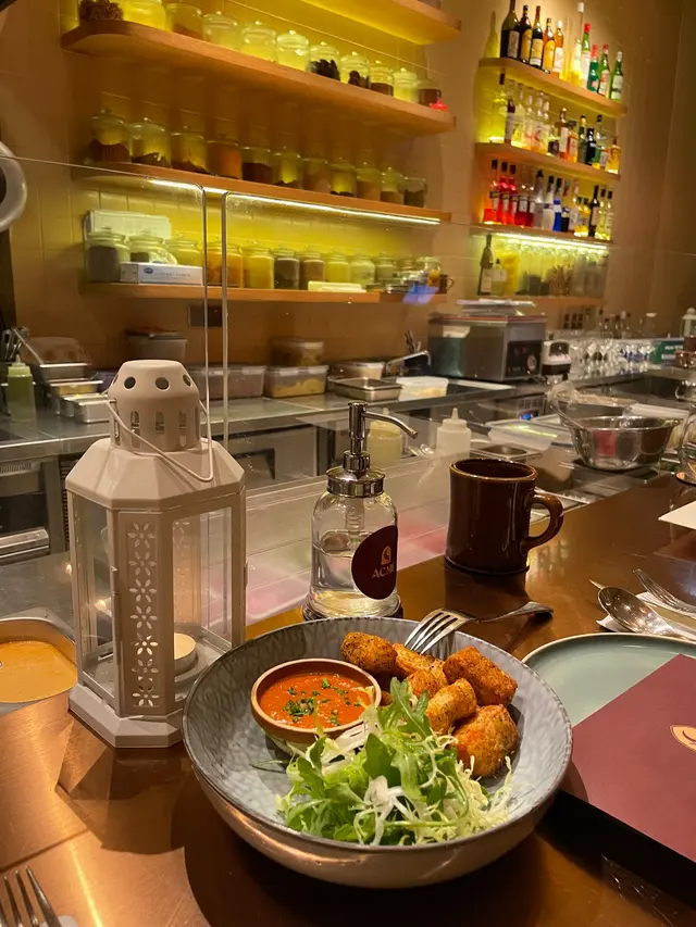 一向覺得中東菜十分迷人,尤其是他們對使用香料的出神入化,無論味道層次、擺盤用色都充滿多樣性。近年來在香港大行其道,愈來愈多人開始關注中東菜,而Acme也是備受好評的餐廳之一。今次有幸坐在bar枱,對正廚師們煮菜的工作枱,猶如演唱會第一排,過程賞心悅目。Ox tongue hummus 鷹嘴豆泥舖底,上層為芫茜乳酪,再灑上生洋葱、炸乾葱、煙燻紅椒粉,牛舌稍微在炭火上烤過,所以食材、香料混合一起,十分惹味,炸乾葱的香脆實在是神來之筆。Sourdough flatbread 即叫即入爐,大概焗 2分半鐘就出爐。熱辣辣,包體鬆軟,sourdough 的淡淡酸味,意外地與hummus夾,令人忍不住一口接一口。Deep Fried Halloumi 通常Halloumi 都是煎香,第一次嘗試蘸上粉漿油炸,鹹香、奶香,十分香口,番茄辣醬汁使味道更豐富,清新的番茄有助解膩。Lamb shank 埃及式手法烹調,先用蔬菜高湯入焗爐煨煮,之後在炭爐上烤,肉質軟淋,一點也不乾身。薯蓉非常好食,廚師即場烹煮調味,再混入薄荷、番茜,淋上高湯、酥油、洋蔥汁熬煮,紅蘿蔔、洋蔥清甜,香滑惹味,充滿油潤感。灑上乾葱、炸羽衣甘藍碎,十分香口,口感層次豐富。Baklava酥皮非常鬆脆,餡料合桃碎、糖漿、開心果碎,充滿堅果香味,雖然口味上仍偏甜,少吃多滋味。…查看更多