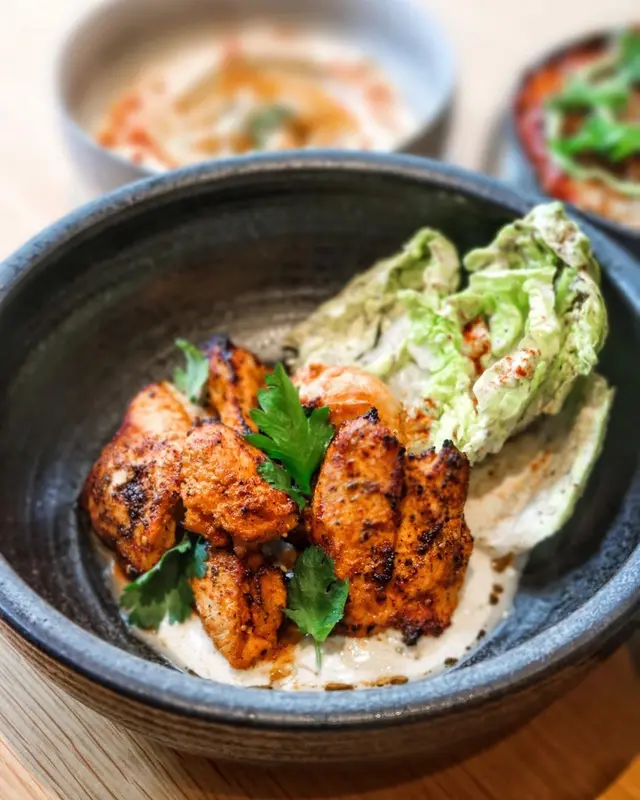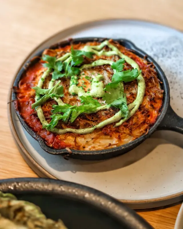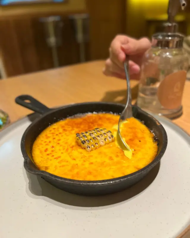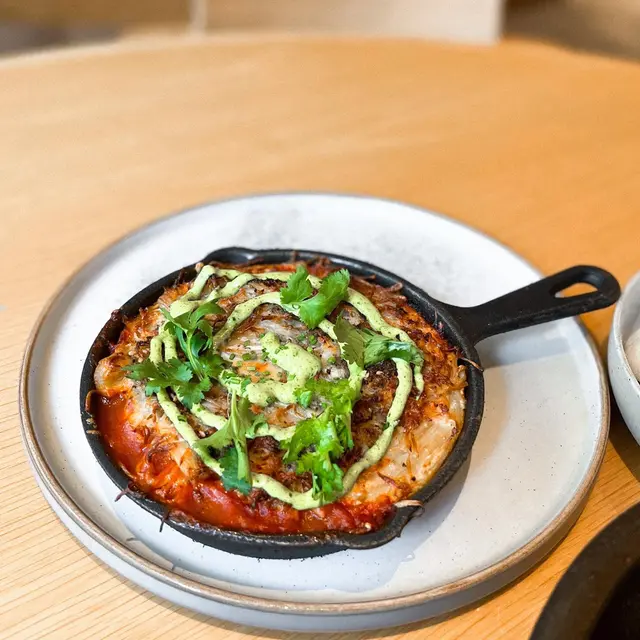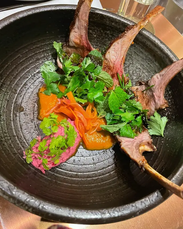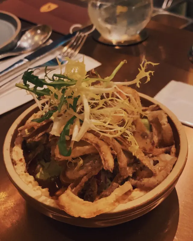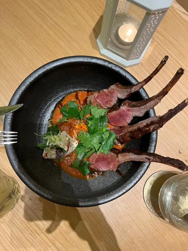 一向覺得中東菜十分迷人,尤其是他們對使用香料的出神入化,無論味道層次、擺盤用色都充滿多樣性。近年來在香港大行其道,愈來愈多人開始關注中東菜,而Acme也是備受好評的餐廳之一。今次有幸坐在bar枱,對正廚師們煮菜的工作枱,猶如演唱會第一排,過程賞心悅目。Ox tongue hummus 鷹嘴豆泥舖底,上層為芫茜乳酪,再灑上生洋葱、炸乾葱、煙燻紅椒粉,牛舌稍微在炭火上烤過,所以食材、香料混合一起,十分惹味,炸乾葱的香脆實在是神來之筆。Sourdough flatbread 即叫即入爐,大概焗 2分半鐘就出爐。熱辣辣,包體鬆軟,sourdough 的淡淡酸味,意外地與hummus夾,令人忍不住一口接一口。Deep Fried Halloumi 通常Halloumi 都是煎香,第一次嘗試蘸上粉漿油炸,鹹香、奶香,十分香口,番茄辣醬汁使味道更豐富,清新的番茄有助解膩。Lamb shank 埃及式手法烹調,先用蔬菜高湯入焗爐煨煮,之後在炭爐上烤,肉質軟淋,一點也不乾身。薯蓉非常好食,廚師即場烹煮調味,再混入薄荷、番茜,淋上高湯、酥油、洋蔥汁熬煮,紅蘿蔔、洋蔥清甜,香滑惹味,充滿油潤感。灑上乾葱、炸羽衣甘藍碎,十分香口,口感層次豐富。Baklava酥皮非常鬆脆,餡料合桃碎、糖漿、開心果碎,充滿堅果香味,雖然口味上仍偏甜,少吃多滋味。…查看更多