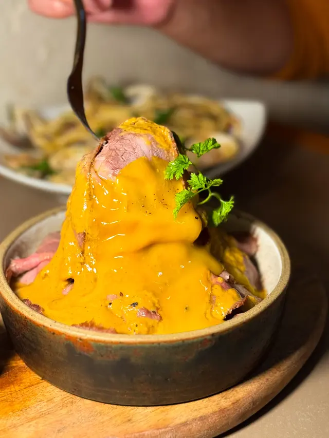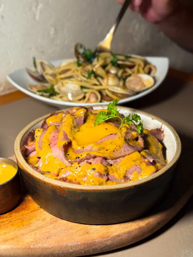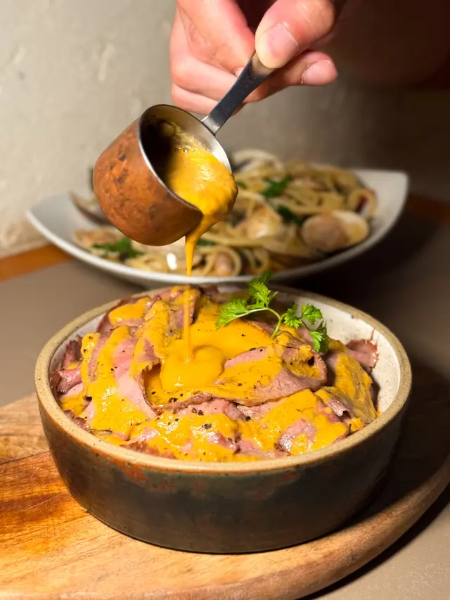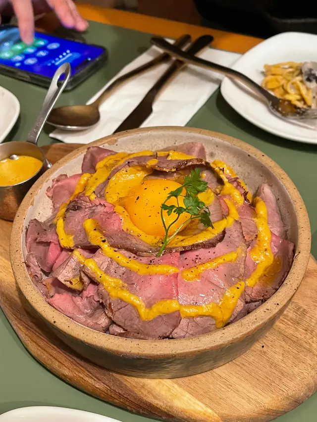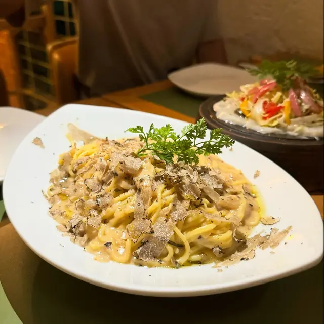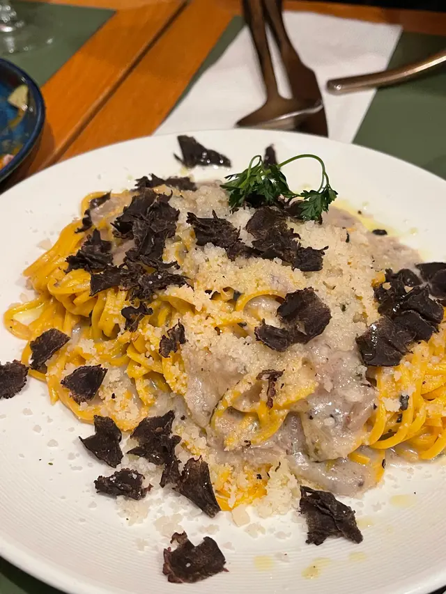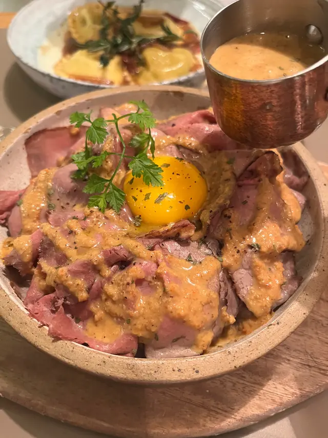 在中環蘇豪區這間意日fusion餐廳 找到了我最喜愛的意大利芝士餛飩😍!!味道真心有驚喜❤️做到皮薄餡靚 既帶有creamy的口感 但又不會太膩 恰到好處✅朋友們一致認同👍高質之選🥰👉香草芝士意大利餛飩🧀Herb Ravioli with 30-month-aged Parmesan fondue 🫕 餛飩皮軟腍 不會太厚 內餡放了新鮮香草和肉碎🌿配合30個月巴馬臣芝士醬 味道很夾很濃郁 超級好味🤤到目前為止 真係我試過最好食嘅意大利餛飩🤭💯!👉松露闊條麵Truffle Tagliolini👍即刨的黑松露放在意粉上 味道很香😋 份量都十分慷慨!👉醃豬頰肉番茄長通粉Rigatoni Amatricana長通粉掛汁能力很好 但番茄汁味道中規中矩 沒什麼特別的👉薄片意式生帶子Scallop Carpaccio帶子新鮮 廚師刀工不錯 切得很薄👏👉招牌提拉米蘇Tiramisu❤️ 果然係招牌甜品 好彩當日試到最後一個🤭 芝士幾香滑 配合淡淡的咖啡味 酒味比較輕 口感很綿密 入口即溶 味道不會太甜或太苦💕本身想試埋佢個招牌Roast Beef Japanese Rice可惜當日咁岩賣晒🥲唯有留返個機會比我下次再來試啦haha😆…查看更多