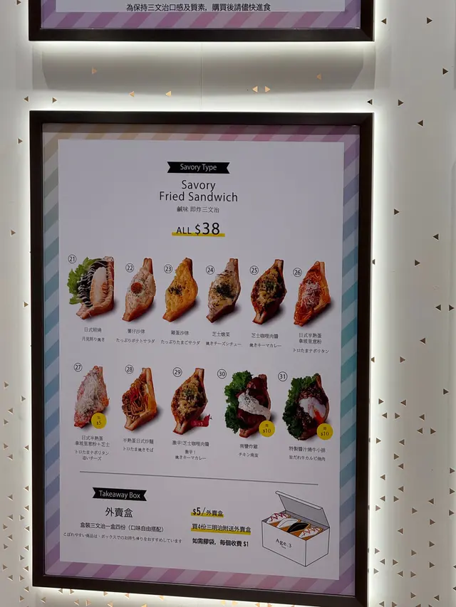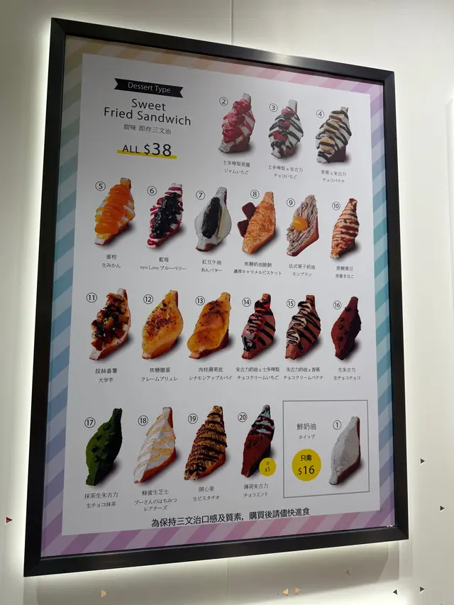款款都爆餡 人氣即炸三文治.來自日本福岡的人氣炸三文治之前喺日本見到已經好想試估唔到佢竟然會喺香港開分店香港旺角moko分店仲要係第一間海外分店!.抹茶生朱古力食剩指數:10/100好多抹茶忌廉好順滑Creamy茶味充足唔會過甜表面充滿抹茶粉.蜂蜜生芝士食剩指數:10/100生芝士軟滑綿密加左蜂蜜有一種清甜味.除咗甜嘅味之外仲有咸點下次經過有機會一定會試吓!.Age.3地址:旺角MOKO新世紀廣場M41號舖查看更多