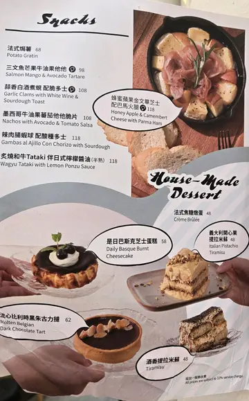 Finally had the chance to meet my friend and we grabbed the chance to celebrate our bday tgt at this resto in Sheung Wan. .We ordered the following dishes to share:-Honey Apple & Camembert Cheese with Parma Ham (HKD118)The honey-drizzled apple and the slightly burnt camembert cheese, paired with the parma ham and baguette, created a complex combination. I could taste the sweetness of the honey apple, the savoury flavour of the parma ham and the semi-melted texture of the Camembert cheese all at once. -Seared Foie Gras & Duck Leg Confit with Truffle Mushroom Risotto (HKD238)The truffle risotto was fragrant, with the rice grains absorbing the essence of the truffles and porcini, making it rich and creamy, albeit quite moist. The foie gras was fried to a crispy exterior and a soft interior, which melted in your mouth. The duck legs were slow-cooked to a very tender texture. -Tiramisu (HKD48)It had a strong aroma of coffee and alcohol. The mascarpone cheese soaked into the ladyfingers nicely, resulting into a moist yet very creamy dessert with a great balance of sweetness and bitterness. -Daily Basque Burnt Cheesecake (HKD58)We selected 72 percent Belgian black chocolate flavour. Topped with cocoa powder and cream, the cake was delicious with a toasted crust and a cheesy inner. The strong chocolate flavour added a luxurious touch. Notably, the staff wrote the bday message on the dessert plate using chocolate sauce..Interestingly, we could ask the staff to serve our desserts through scanning the QR code. .The staff was really nice and helpful. They served us patiently even though I kept dropping the tableware on the floor🙈. When my friend wanted to use the toilet, but it was occupied, they were very attentive and informed her as soon as it became available. .The resto has two floors and a small outdoor leisure area which mimics camping site on the ground floor. Its white wallpaper and wooden furniture create a relaxing atmosphere.…查看更多