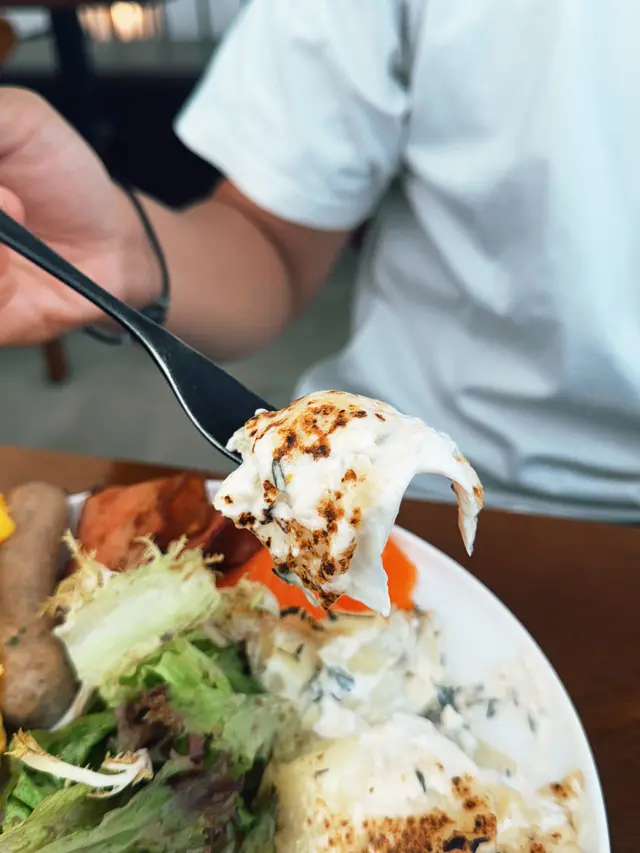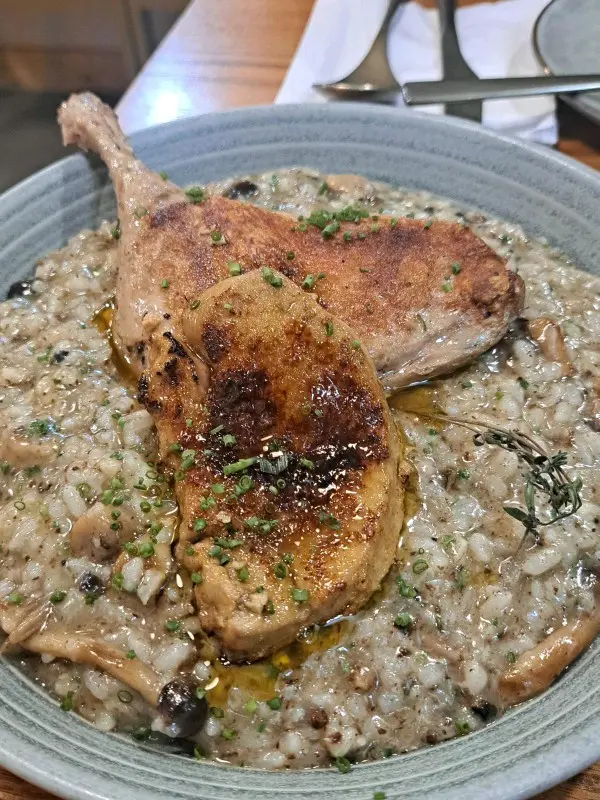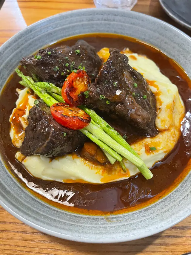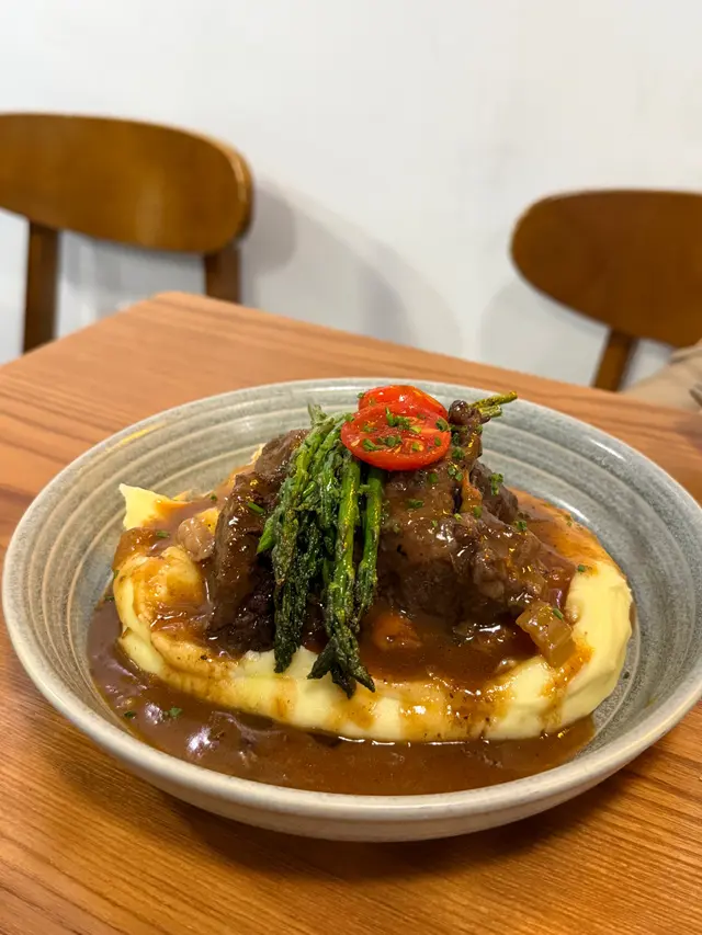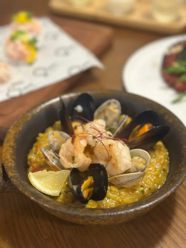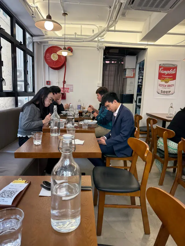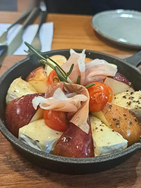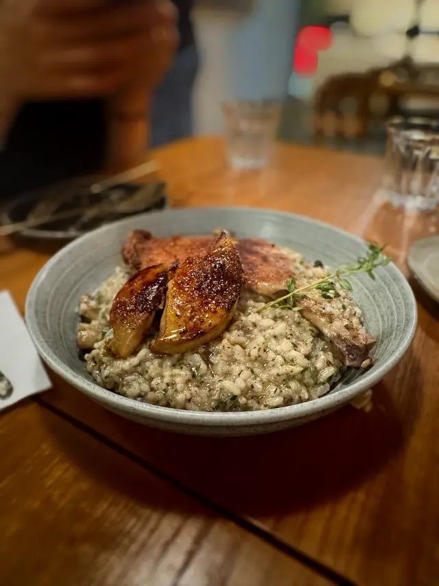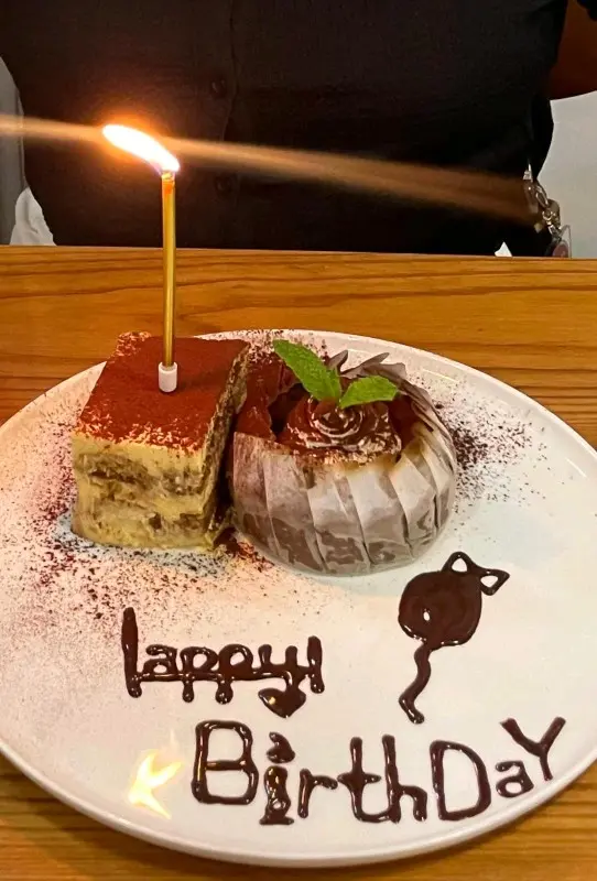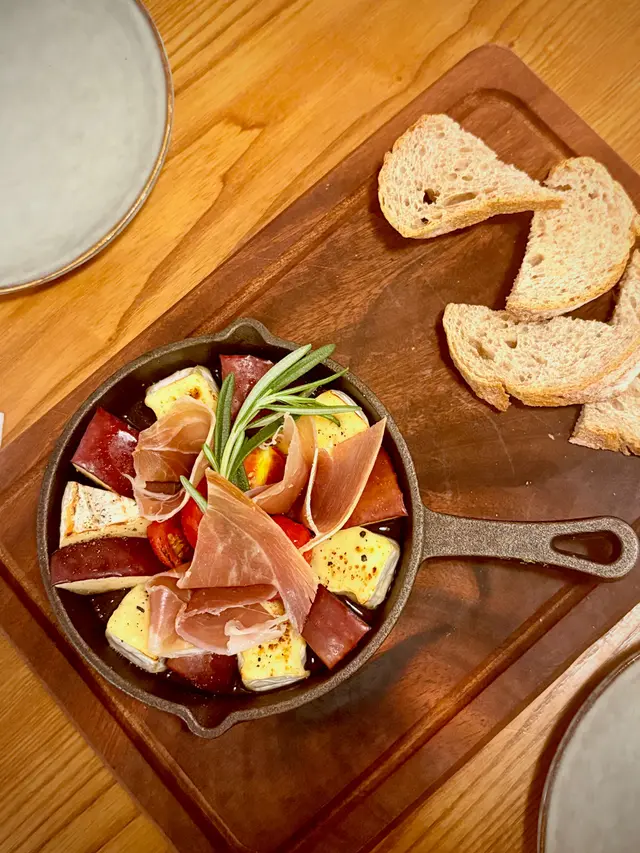 Finally had the chance to meet my friend and we grabbed the chance to celebrate our bday tgt at this resto in Sheung Wan. .We ordered the following dishes to share:-Honey Apple & Camembert Cheese with Parma Ham (HKD118)The honey-drizzled apple and the slightly burnt camembert cheese, paired with the parma ham and baguette, created a complex combination. I could taste the sweetness of the honey apple, the savoury flavour of the parma ham and the semi-melted texture of the Camembert cheese all at once. -Seared Foie Gras & Duck Leg Confit with Truffle Mushroom Risotto (HKD238)The truffle risotto was fragrant, with the rice grains absorbing the essence of the truffles and porcini, making it rich and creamy, albeit quite moist. The foie gras was fried to a crispy exterior and a soft interior, which melted in your mouth. The duck legs were slow-cooked to a very tender texture. -Tiramisu (HKD48)It had a strong aroma of coffee and alcohol. The mascarpone cheese soaked into the ladyfingers nicely, resulting into a moist yet very creamy dessert with a great balance of sweetness and bitterness. -Daily Basque Burnt Cheesecake (HKD58)We selected 72 percent Belgian black chocolate flavour. Topped with cocoa powder and cream, the cake was delicious with a toasted crust and a cheesy inner. The strong chocolate flavour added a luxurious touch. Notably, the staff wrote the bday message on the dessert plate using chocolate sauce..Interestingly, we could ask the staff to serve our desserts through scanning the QR code. .The staff was really nice and helpful. They served us patiently even though I kept dropping the tableware on the floor🙈. When my friend wanted to use the toilet, but it was occupied, they were very attentive and informed her as soon as it became available. .The resto has two floors and a small outdoor leisure area which mimics camping site on the ground floor. Its white wallpaper and wooden furniture create a relaxing atmosphere.…查看更多