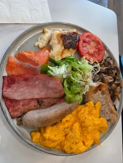 一間少少的咖啡店,在荔枝角一條不起眼的街道,經過幾次很想嘗試,但是因為趕時間的關係便離開了。香蒜白酒蜆肉意粉 $122滿心期待,看見即叫即整的意粉來到餐桌上,但發現為什麼有辣椒,讓我有點不經意地皺眉,因餐牌沒寫是辣的,雖是微辣,但如果我是不吃辣的,就有點被迫吃辣的感覺。 有大約十隻蜆,數量是充足的,但是意粉真的很油膩,每一口也是油,讓我思想到底我在吃甚麼,是吃意粉還是在吃油。All Day Breakfast $138雞蛋炒得香軟嫩滑,牛油炒菇,煙肉也是煎得剛好,沒有太乾,香腸也是熱的,麵包也是香脆也有一些蔬菜伴碟。all day breakfast很難做得不好,所以其實這是意料之中。這間店舖的食物水準中等,但是價錢有些進取。這個價錢可以有更好的質素或者是附送飲品,這店一試無妨,但是要有心理準備價錢是貴。…查看更多
