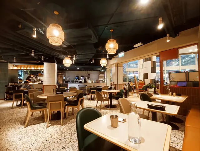 餐廳主打健康歐陸菜式,裝潢亦以橙啡、寶藍及銀灰為主調,設計簡約,帶時尚感。