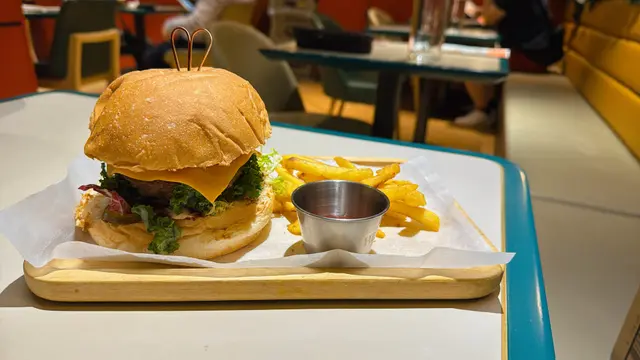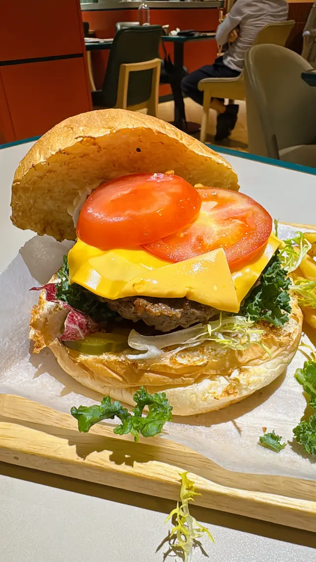 安格斯牛肉芝士漢堡配黑松露薯條:漢堡超足料、麵包烘到微脆,牛肉選用優質安格斯,入口鮮嫩又多汁,配埋半溶芝士、番茄同生菜,味道清新討喜。