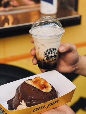 行過油麻地,比 am.pm 門口既香味吸引住,呢度主打街頭甜品,全部都係即叫即製。最正係可以透過玻璃窗見到佢地即場製作疏乎厘,睇住d蛋漿慢慢發起,變成一個個肥嘟嘟既疏乎厘,感覺真係好治癒😍,忍吾住即刻停低買黎食!.首先叫左個 特濃朱古力香蕉疏乎厘 ($50) 🍫。因為係即場製作,拎上手仲係熱辣辣既!兩塊疏乎厘疊高高,空氣感十足,震騰騰咁。面頭淋上特濃朱古力醬,再加埋朱古力粉同朱古力碎,簡直係朱古力控既天堂。頂部仲有一層焦糖香蕉🍌,脆脆地既焦糖配埋軟綿綿既疏乎厘,入口即溶,正!.另外又叫左個 D24榴槤牛角包窩夫 ($40) 🥐。個窩夫烘得好鬆脆,咬落去口感好好。重點係窩夫上面放滿左榴槤肉同榴槤蓉,真係好足料!每一啖都充滿濃郁既榴槤香味,配埋熱辣辣既窩夫,真係無得輸🤤。.野飲方面,叫左杯 宇治抹茶珍珠牛乳 ($35) 🍵。抹茶味幾突出,回甘得黎吾會太苦,同順滑既牛乳好夾。d珍珠煮得岩岩好,煙煙韌韌,一路行一路飲好爽。.而黑糖珍珠牛乳 ($35) 🧋。黑糖紋掛杯好靚,打卡一流。飲落去黑糖味香濃但吾會死甜。…查看更多