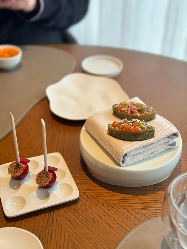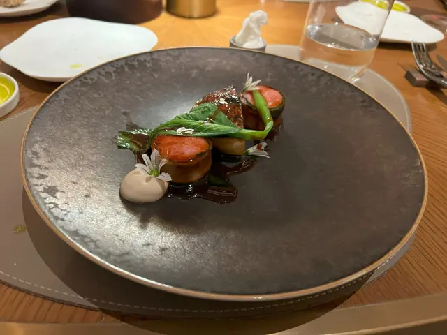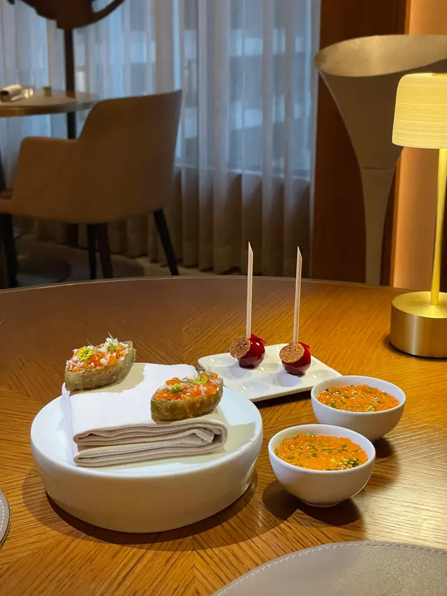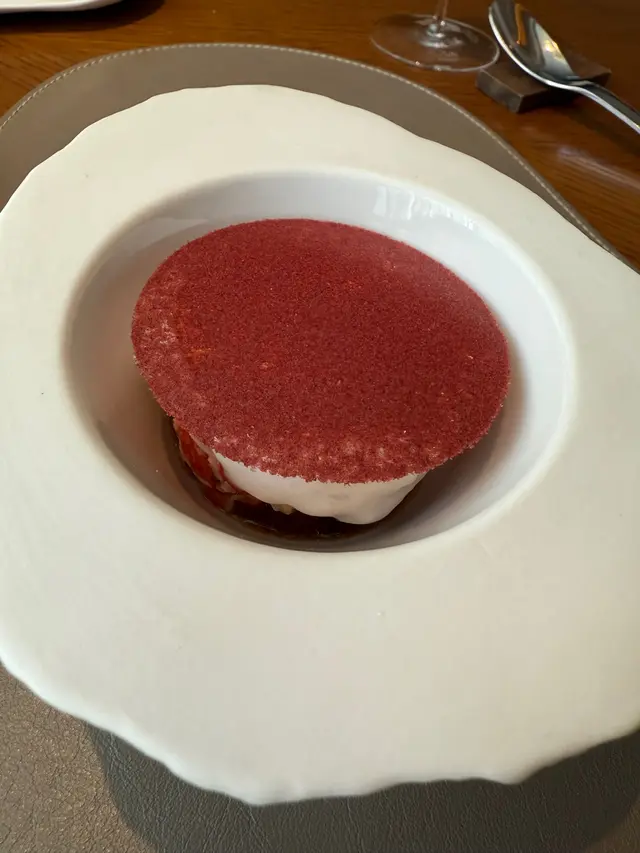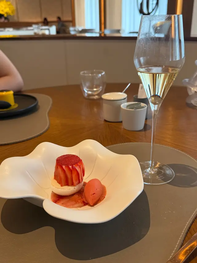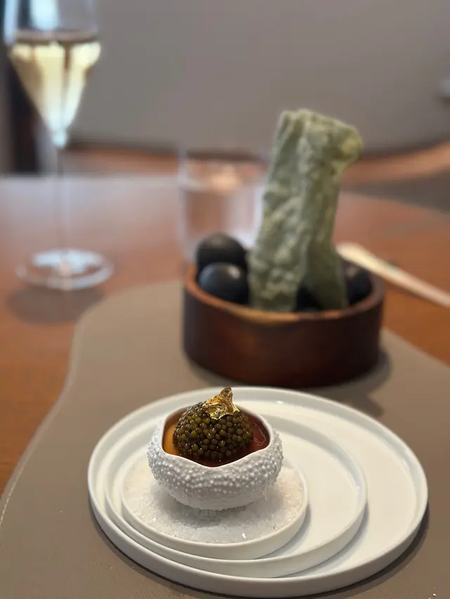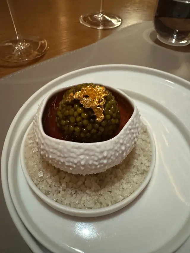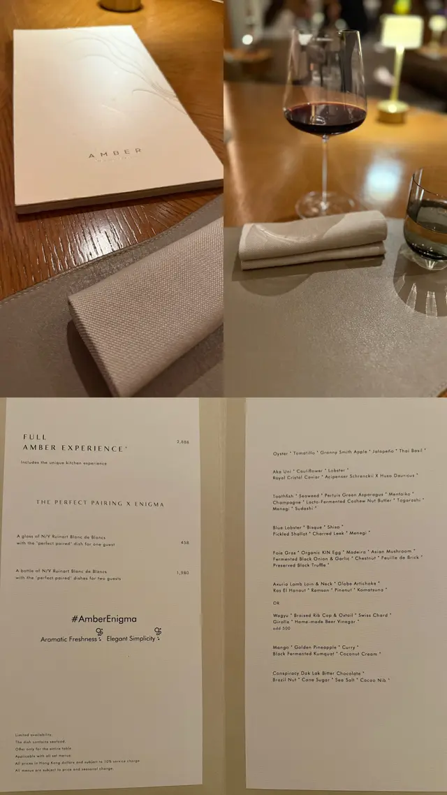 📍地址: 中環皇后大道中15號置地文華東方酒店7樓✿😋味道😋:4/5✿🏙️環境🏙️:4.5/5✿🤵🏻服務🤵🏻♂️:4.5/5✿👀賣相👀:4/5✿💰價位💰:3.5/5↠⏰時段:Dinner 19:30 ↞ ✦✧ 根據《2025香港澳門米芝蓮指南》名單公布,置地文華東方酒店嘅法國餐廳Amber成功由米芝蓮二星晉升為米芝蓮三星;餐廳主要以金色同埋米色為主調,配合黃銅同埋橡木餐桌設計。✧✦ 主廚喺來自荷蘭嘅Richard Ekkebus,佢嘅菜式主要強調烹飪產業永續實踐嘅重要性,同時亦帶嚟破格嶄新嘅餐飲概念,所以佢地嘅菜式全面棄用奶類產品。☻ 曾經被譽為超級難book嘅餐廳,但係今時今日唔需要早半年都已經book到!!❦《FULL AMBER EXPERIENCE》❦ $2,888Includes the unique kitchen experience—————————————————————🦐❝ Prawn and Asparagus Tartlets & Asparagus Velouté Prawn Oil ❞ ☞ 作為第一道上嘅Amuse-bouche用咗爽口嘅日本櫻花蝦刺身,底部有白蘆筍和紫蘇葉,但喺外層嘅tart皮略為太油,上面加咗蝦油點綴,開胃程度不是太驚艷。—————————————————————🦀❝*Alaskan King Crab ° Salt Tomato ° Espelette Chili ° Extra Virgin Olive Oil ° Uchibori Vinegar ° Ginger °❞ ☞ 用咗阿拉斯加帝王蟹為主角,配咗漬番茄脆片、Espelette辣椒、特級初榨橄欖油、Uchibori 嘅醋同埋生薑;首先要敲打上面脆片先,加食埋入面嘅蟹肉鮮嫩,中間鋪咗蕃茄同埋打咗層泡泡,食落層次好豐富。—————————————————————🐚❝Aka Uni ° Cauliflower ° Lobster °Royal Cristal Caviar ° Acipenser Schrenckii & Huso Dauricus ❞ ☞ 呢個招牌菜——(Aka Uni)的確好出色,用咗北海道嘅赤海膽加埋Daurenki魚子醬,為咗唔用奶製品,所以喺用咗豆奶加椰菜花嚟做替代品,打成mousse,入面仲加咗龍蝦啫喱,配搭日本海藻脆片食,食落啖啖咸鮮,而且好有層次感。—————————————————————🐟❝Toothfish • Seaweed • Pertuis Green Asparagus • Mentaiko •Champagne •Lacto-Fermented Cashew Nut Butter •Togarashi •Menegi • Sudashi • ❞ ☞ 跟住呢度菜式就喺Kitchen Experience環節,主要係去參觀埋佢地嘅廚房,然後喺廚房享用呢道菜;首先一開頭就俾咗杯無酒精氣泡茶,然後主廚即時親手處理一道餸,佢將鱸魚放上炭爐,配合海澡包住,加埋蘆筍做配菜,最後淋上明太子+腰果醬+七味粉+酸豆粉+香檳調配嘅醬汁;鱸魚做咗半熟狀態,所以口感嫩滑。—————————————————————🍞❝Sourdough❞ ☞ 呢個麵包熱辣辣而且外脆內軟,簡直世界級,再配合佢自家製嘅(Butter),佢嘅”牛油”係用堅果加豆奶製作成嘅醬,口感好豐厚同順滑。—————————————————————🦞❝Blue Lobster • Bisque • Shiso • Pickled Shallot • Charred Leek • Menegi ❞ ☞ 法國藍龍蝦搭配葉青蔥,再加咗龍蝦汁,不過龍蝦肉比醬汁掩蓋咗佢嘅鮮甜,唔算太有驚喜。—————————————————————🪿❝Foie Gras • Organic KIN Egg • Madeira • Asian Mushroom • Fermented Black Onion & Garlic • Chestnut • Feuille de Brick • Preserved Black Truffle ❞ ☞ 呢個類似係茶碗蒸,用咗鵝肝搭配有機蛋、馬德拉醬、羊肚菌、脆炸黑洋蔥同埋大蒜、栗子;旁邊仲有塊細脆餅配黑松露。鵝肝綿滑加上脆炸配料,口感層次豐富。 —————————————————————🐑❝Axuria Lamb Loin & Neck • Globe Artichoke • Ras El Hanout • Ramson • Pinenut • Komatsuna ❞ ☞ 呢道菜喺用羊腰同埋羊頸,搭配洋蓟加松子。羊肉出嚟喺玫瑰色肉質,口感嫩滑。 —————————————————————🐮❝Wagyu beef • Braised Rib Cap & Oxtail • Swiss Chard •Girolle • Home-made Beer Vinegar ❞ 《+$500》☞ 主菜加$500可以升級做日本宮崎A5和牛,和牛入口即溶,而且帶有小小牛味,雪花紋好均勻,油脂滿溢而不膩;側邊嘅配菜加咗紅燒牛肋排同牛尾 、瑞士甜菜、雞油菌菇、再配搭咗自家製啤酒醋。 —————————————————————🍋❝William Pear • Bourbon Vanilla • Michter's Bourbon •Amatika Vegan • Milk • Pear Wood Smoke • Maple Syrup •❞ ☞ 呢個Mignardises原本係由餐牌Conspiracy Dak Lak Bitter Chocolate 轉成嘅,但係呢個甜品都係麻麻哋。 🥭❝Mango ° Golden Pineapple • Curry °Black Fermented Kumquat • Coconut Cream ❞ ☞ 呢道Mignardises喺由芒果、菠蘿、柑橘加埋,但係成個甜品酸度極高,感覺唔太良好,旁邊加入黑色嘅椰子竹炭雪糕,簡單啲講淨係個雪糕好食。 🥠❝ Madeleines ❞ ☞ 呢個petit four以佢嘅招牌貝殼形嘅瑪德琳小蛋糕,用蕎麥粉,玉米粉,米粉,organic KIN eggs,紅糖,特級初榨橄欖油,椰子油製成,並不含麩質,的確幾好食。…查看更多