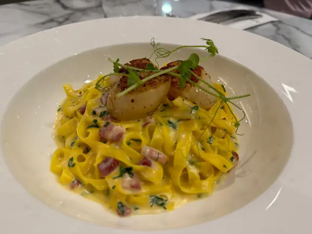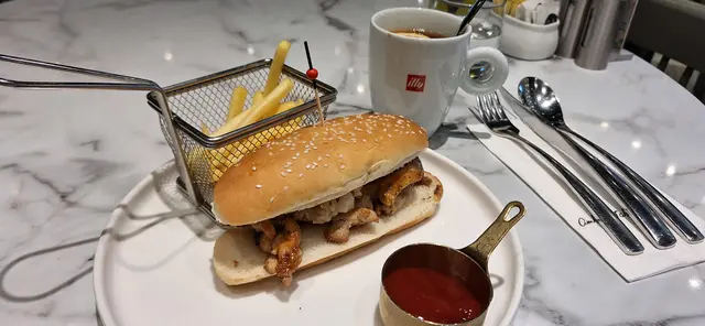 與友人相聚,推介呢間餐廳Work day lunch min $148 +10%, 對佢係有啲expectation 嘅去到坐低發現座位非常非常之迫, 感覺已經打八折。沙律上檯見有兩塊燒牛肉, 擺盤係唔錯嘅。沙律菜係新鮮,燒牛肉就普通貨式。之後pasta上檯, 蝦係彈牙但質量只算合格。說好的tiger prawn 只係普通白灼蝦大小,可接受但唔值呢個價位最後餐飲杯檸茶,只有色而無茶味,完全唔掂Conclusion - 一次便夠…查看更多