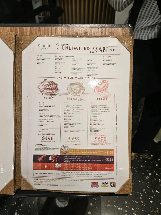 坐喺尖沙咀海港城海邊,對正維港,黃昏可以入座,坐到夜晚既維港景呢度係西班牙米芝蓮二星主廚 Paulo Airaudo 嘅香港首間分店,新推出 Deluxe 6-course Set Menu,每位 $788,先揀前菜、湯品、沙律、海鮮主菜、肉類主菜同甜品各一款。食完之後,37道菜式可以無限追加,全部即叫即整,熱辣辣上枱。最早 5:30 入座,可以慢慢食足 4 個半鐘。原本喺 OpenRice 睇評論,有少少心理準備,但比想像中好!!!前菜試咗五款,基本上冇伏;Main我哋兩個人食咗十幾個,龍蝦尾、A5和牛、巴斯克芝士蛋糕同 Tiramisu 特別好食,已經回本有餘。整體而言,海鮮比肉類更出色,鮑魚同鹿肉唔算推介,但勝在選擇多,可以試唔同菜式〔 升級玩法 〕每位加 $128,就有埋「鹿兒島A5和牛西冷」同「炭燒龍蝦尾」兩款追加主菜,仲送一支秘製龍蝦湯外帶版(約400ml) 返屋企。龍蝦湯用超過 10 公斤波士頓龍蝦頭熬製湯色深橙,用嚟煮龍蝦意粉或者燉飯都好正〔 必試推介 〕◦ 炭燒龍蝦尾|肉質爽彈,帶香草青醬香◦ 鹿兒島 A5 和牛|油花平均,入口即化◦ 前菜五款|冇伏,每款都有新鮮心思◦ 巴斯克芝士蛋糕 & Tiramisu|香濃滑溜,甜度適中 。最後3個甜點試哂,呢兩款都幾有驚喜!!!幾好食〔 小貼士 〕 鮑魚就韌咗啲,燒生蠔細隻啲,但勝在全部主菜即叫即燒,慢慢食住睇日落,坐足幾個鐘都得—𖠿𖥣 Amelia Hong Kong @ameliahongkong〒 尖沙咀海港城海運大廈地下 OT G63A-G63B 號鋪—#尖沙咀美食 #海邊餐廳 #炭燒海鮮 #A5和牛 #龍蝦控 #香港餐廳 #日落景 #提拉米蘇 #巴斯克芝士蛋糕#eathkgirls #食港女…查看更多