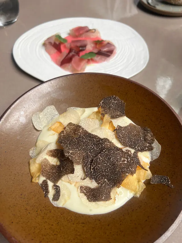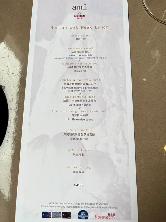 入正題四道菜lunch menu價位中上而我覺得值回票價而當日我嘅最大領悟係湯是靈魂汁是膽法國菜嘅複雜性同細緻度可以做到咁妙極絕對要歸功呢兩個元素前菜主菜甜品每層遞進都有驚喜每道菜聽介紹覺得腦袋要hand 機到真正品嚐嗰刻先真正覺得係思極妙極亦因此難以判別哪一道菜才是主角個人最深刻係個🍄🟫蘑菇湯能夠咁多年都穩坐主角寶座再被冠上招牌菜嘅光環貌似平凡但飲第一啖就會「wow」出聲冇加一滴水只用法國白蘑菇同忌廉熬煮最後用胡椒簡單調味加埋個黑胡椒香菇卷令菌香香氣最升級愈食愈欲罷不能其次 🦀紹興酒茴香焗蟹 用大閘蟹拆肉醬汁尾韻有微微黃酒香再加上fennel令蟹嘅鮮香更明顯另外主菜海鮮vol au vent個酥皮盒太、驚、豔!脆皮有層次得嚟竟然可以做到咁好薄身一切就feel到係好light 同好脆嘅酥皮中間海鮮濃湯肉量豐富有龍蝦肉、帶子同魚肉濃湯+酥皮呢個組合勁正!甜品方面望到 chef Nicolas 就知梳乎厘係必點跟season轉口味每次嚟都食到唔同而今次係栗子🌰嘅組合另一款都係經典口味 Paris-Brest choux …查看更多