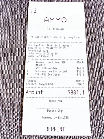 上星期六同朋友系金鐘AMMO食weekend brunch~ 餐廳前身系軍火庫遺址,將歷史同現代設計完美融合,陽光透過落地玻璃灑落,環境超有feel📸這次的升級版早午餐體驗令人印象深刻,特別是幾道特色菜:🦞 LOBSTER MACCHIATO 龍蝦瑪奇朵 (+$45)侍應上菜時,我誤以為是一杯咖啡。原來是濃郁的龍蝦湯配上綿密泡沫,鮮味在口中縈繞不散。而龍蝦肉串在竹籤上,方便食客享用。🍖 IBERICO HAM & MELTING EGG 伊比利火腿流心蛋咸香柔軟的火腿配上流心蛋,蛋黃汁液混合芥末薯蓉泡沫,搭配烤蘑菇同麵包粒,口感層次豐富。🌮 CHICKEN ENCHILADAS 墨西哥烤雞卷酸甜微辣相當醒胃,甜椒同洋蔥帶來清新口感,配上濃郁芝士同微酸番茄莎莎,風味平衡又惹味。🥩 8OZ USDA PRIME RIB-EYE STEAK 美國頂級肋眼牛排 (+$70)煎得恰到好處,肉質軟嫩多汁,搭配約克郡布甸同太陽蛋,蘸上濃縮小牛肉汁,令人滿足!🍮 EGG CUSTARD CARAMEL 焦糖燉蛋蛋香濃郁,焦糖唔會太甜。吃過豐富早午餐同朋友一起歷史建築散步,感受藝術氣氛,系完美嘅週末小憩之選。查看更多