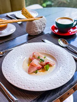 喺金鐘一個市區地方但又可以自成一角既餐廳~四周被樹木圍繞住~🌳🌲原來佢地有tasting menu,第二位仲可以半價🥹內容非常豐富~✨Dinner Tasting Menu $728 ✨第一個頭盤AMERA TOMATO & BURRATA 🍅🧀日本蕃茄夾水牛芝士炸牛蒡配柑橘汁話梅粉柑橘醬汁非常開胃,蕃茄亦都爆汁~蕃茄會草青味~✨第二個頭盤CRUDO DI CHUTORO & SWEET POTATO日本拖羅薩摩芋🐟中拖羅入口即溶,手指青檸提升香氣🍷另外可以加$350要Wine pairing 但最尾都揀左Mocktail ~Grapefruit Lime SpritzerVirgin Sangria兩杯好香果味好開胃,因為用Mixed Fruits去整~✨第一個主菜GIROLLES PAPPARDELLE 法國雞油菌配現刨松露 🍝濃郁松露香氣,而醬汁係用雞湯煮成,扁意粉吸哂啲湯汁。✨第二個主菜SEARED KINMEDAI FILLET 香煎金目鯛 🐟魚皮煎到金黃脆身,魚肉好嫩,吸哂白酒牛油汁,加左三文魚子食落更突出魚鮮味。🍾最後上甜品配酒Carlo & Sylvia Moscato D' Anti DOCG, Italy最愛既酒細膩氣泡帶有荔枝花香蜜極緻甜品CARAMEL APPLE PUFF PASTRY焦糖蘋果酥🍎雲呢拿煉奶foam勁軟綿,個酥皮好脆,唔太油想食多舊~~🤵🏻店員仲送上帶走甜品,呢細心既餐廳邊度搵呢個餐單仲包餐飲一個好完美既結尾💯查看更多
