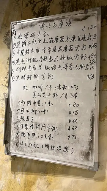 附近幾間食店拍烏蠅,甚至日式料理廚師企成晚都無容,這間小店,有長者情侶及年輕情侶,也有幾枱識食的獨行俠。小店環境有d舊,但有好食嘢係好值得來。白板上的餐包括餐湯餐飲及甜點,款式多,又可加配小食,沒有加一?!我真是只付了94元現金。只有一個侍應,需要小小耐性等他,但定ok嘅。餐湯正常,其實飲完都半飽,煎魚松露長通粉,份量足,好味,吃不完打埋包。然後好期待的蛋布丁才是戲肉,一定是自家製,好滑及好香真蛋味,我感謝好味晚餐,希望各位"有情"人常來光顧。
