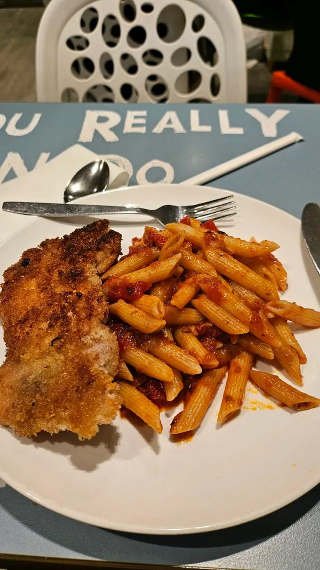 米蘭雞扒茄蓉長通粉下午茶跟凍飲