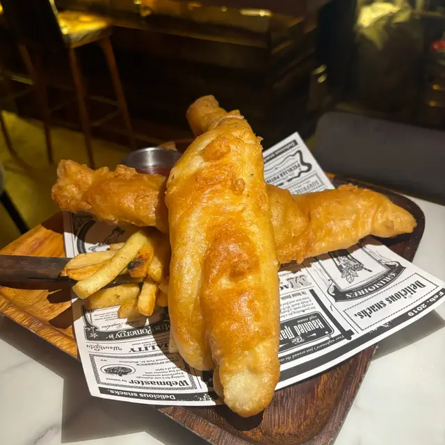 炸啤酒魚柳薯條, 配塔塔醬及茄汁