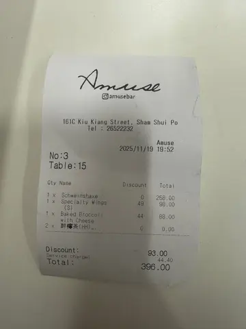住喺深水埗個朋友有福啦🤣估唔到呢度都有一間隱世bar restaurant,想喺度食晚飯又得,飲杯嘢chill下傾吓偈又得,最緊要係Follow Amuse 社交平台 即享指定食品半價⁉️環境:7.5/10餐廳位於深水埗,車站行過去7分鐘左右,餐廳以簡約工業風做主題,配合柔和燈光,簡單而不失氣氛🤩食物:8/10德國鹹豬手$258份量相當多,脂肪同肉嘅比例唔錯,表皮燒得非常香脆,肉質都保持Juicy,調味得宜唔會太鹹,仲要預先幫大家切件,作為一個主菜或者佐酒小食都相當出色👍🏿Specialty Wings (s) 98有三款唔同味道嘅雞翼🐔,分別係水牛城雞翼,蜜糖芥茉同燒烤汁,三隻雞翼各有特色,如果覺得太濃味仲有蔬菜條幫大家refresh一下🥰Beer Battered Fish & Chips $148炸魚足足兩大條咁多❗️食得出炸粉唔係太厚,做到外脆內軟效果,薯條都有另外調味,鹹鹹香香帶少少辣味,炸魚配合酸忌廉醬簡直冇得輸🫣💰性價比:8/10人均$250左右,本身德國鹹豬手set即送 2 杯醉檸茶🍋,因為冇晒轉咗洛神花蜜桃酒🌺酒味不是太濃容易入口,啱晒唔係成日飲酒嘅朋友~…查看更多