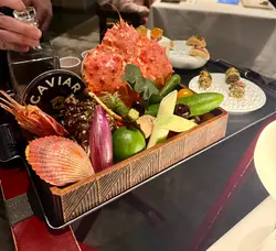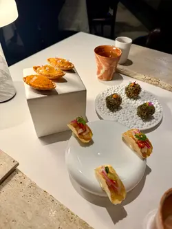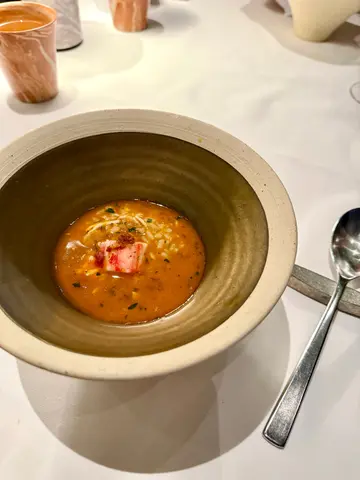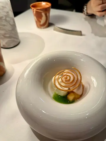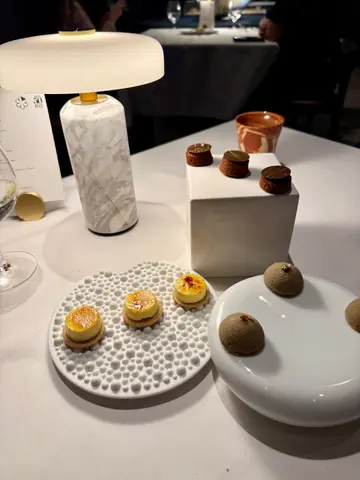 —🫔 Amaebi Carrot Tart with Passionfruit Jelly🌮 Hokkaido Scallop Tacos🍙 Hamachi Tartare Roll🍹 Jasmine Tea & Grapefruit Guava Juice•🥖 Cereals & Grains Bread❤️•🐟 Spanish Balfegó Tuna with Kristal Caviar❤️🍄🟫 Yunnan Mushroom Dumpling🦞 Lobster with Seaweed Pancake❤️🐮 Argentina Angus Beef❤️🦀 King Crab and Clams Arroz Caldoso❤️•🍑 Peach Sorbet with White Cheese Mousse🍫 Hot Chocolate with Dark Rum Sponge Cake and Rooibos Tea Icecream•🍮 Crema Catalana🍫 Hojicha Chocolate🍪 Chocolate Cookie—除了日法 日意fusion 原來日本x西班牙fusion都幾岩我口味🤩作為麵包控 Cereals & Grains Bread我覺得很好吃 外脆內軟 仲帶有淡淡的麥香😌非常難得地我覺得所有starter同main dishes都很不錯! 只係甜品部份就正正常常啦 Overall來說已經很好了👍…查看更多