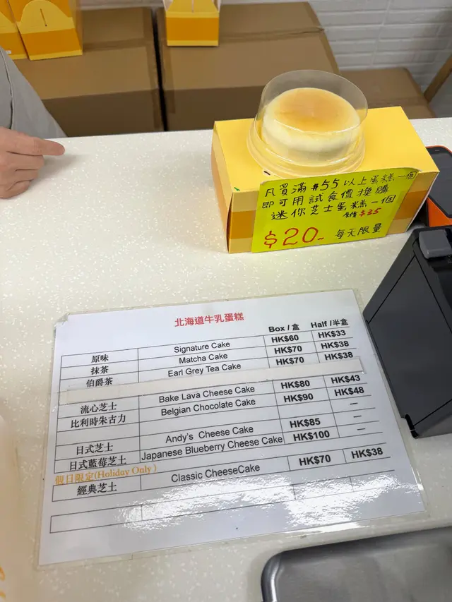 ,所以,買一盒返去同屋企人共享。初時第一眼嘅印象以為佢哋喺賣台式古早蛋糕,因為櫥窗內擺咗好多款長型嘅蛋糕,但再細心望望櫥窗之上,正寫著「北海道牛乳蛋糕」。個人感覺,台式古早蛋糕嘅熱潮已經過晒,依家啲人都只喺當一般嘅烘焙蛋糕店咁睇。唔知喺咪咁,所以你見仲有賣埋北海道牛乳卷蛋、日式芝士蛋糕