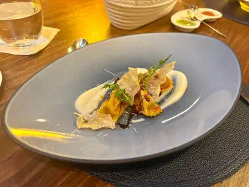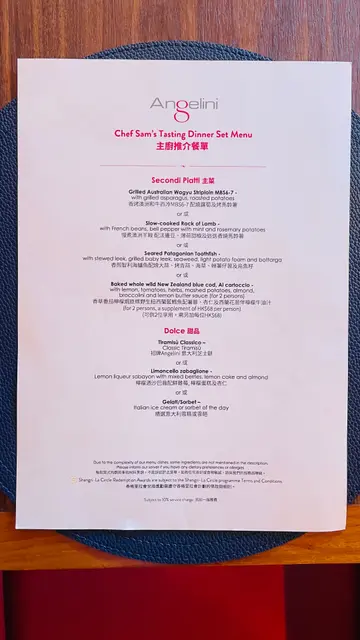 花多眼亂,咩都想試。Chef Sam's Tasting Dinner Set Menu - Four course set(I) Antipasti - Burrata con Pomodoro consumo e Baslllcco / Tentacoio Di Polpo / Gambaro Rosso以芝士為主題的前菜,口感輕盈幼滑,倒入澄清後的蕃茄清湯,稀釋芝士原本的厚重感。最後的羅勒油、蕃茄凍,令整體酸爽不膩。西西里紅蝦韃靼有清爽的青蘋果、散發香氣的魚子醬,賣相吸引。(II) Primi Piatti - Plemontese Agnolotti di Coda di Bue / Linguine alle Vongole / Fusilli lunghi bucati Caclo e Pepe con fegato d'anatra (*seasonal black truffle)自家製牛尾意式雲吞與紅酒汁香氣濃郁,但在黑松露卷卷意粉面前,卻黯然失色。主廚現刨的黑松露、即席於Pecorino羊奶芝士輪拌製卷卷意粉,每一口都有淡淡菌香,而羊奶氣味仍久久不散。加上主廚的幽默感,氣氛感隨即拉滿。(III) Secondi Piatti - Grilled Australian Wagyu Striploin MBS6-7 / Baked whole wild New Zealan blue cod, AI cartoccio (*for 2 persons)Must have dish. 原條紐西蘭野生藍鱈魚,用香草、杏仁、蕃茄、檸檬等配料提鮮,用玻璃紙包裹慢煮,牛油與魚脂慢慢融合,令魚肉變得鮮嫩。加上馥郁醬汁和綿密薯蓉,無懈可撃。(IV) Dolce - Tiramisu Classico / Limoncello zabagllone / Gelati or Sorbet忙於打卡的關係,甜品都融為一體。但是,Claasic Tiramisu的酒香和咖啡濃度比例出色。-Seafood Casserole除了會特別設置Happy Birthday Menu之外,也會拍下即影即有的照片留念,儀式感Max!…查看更多