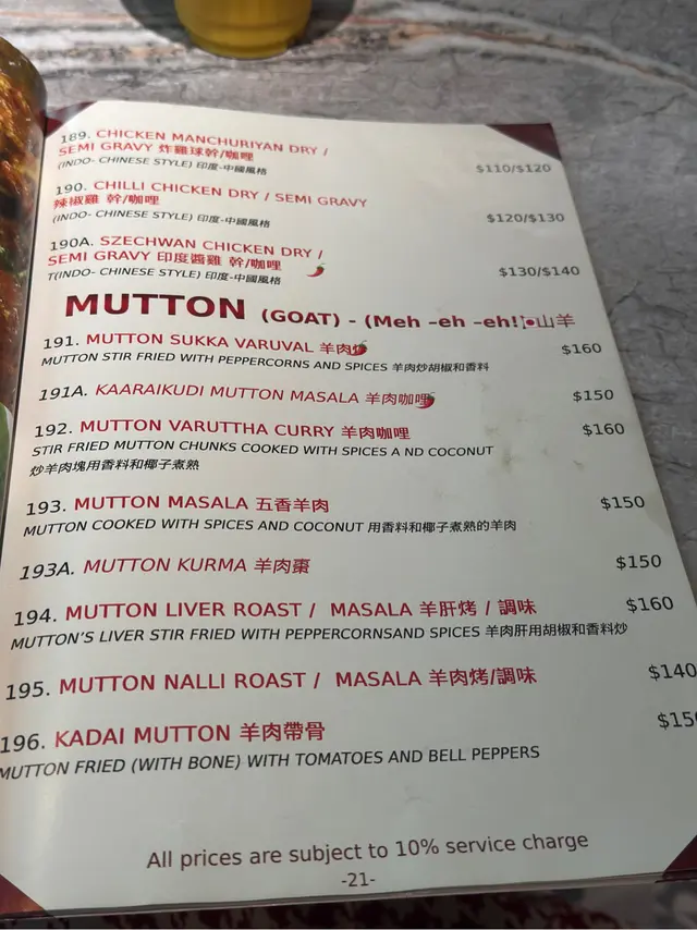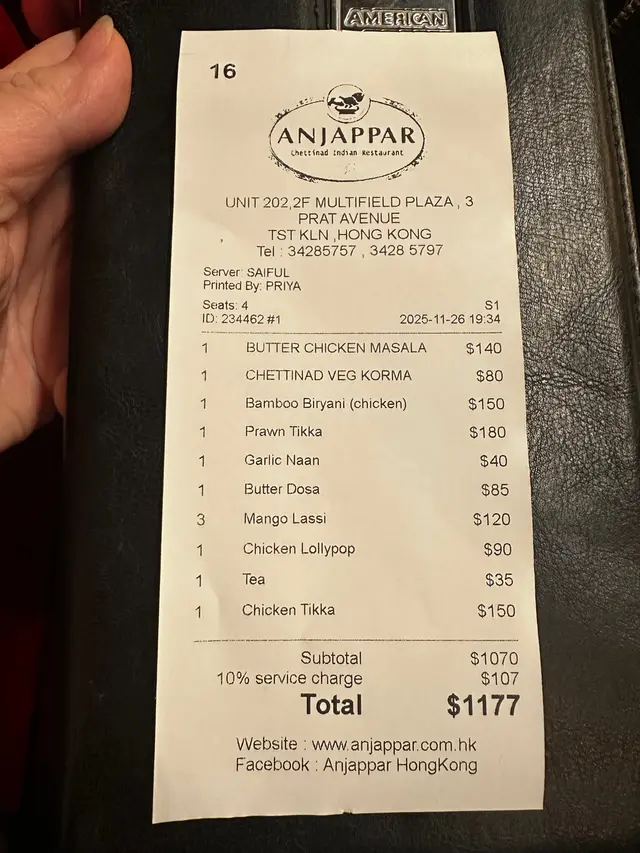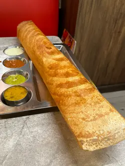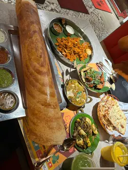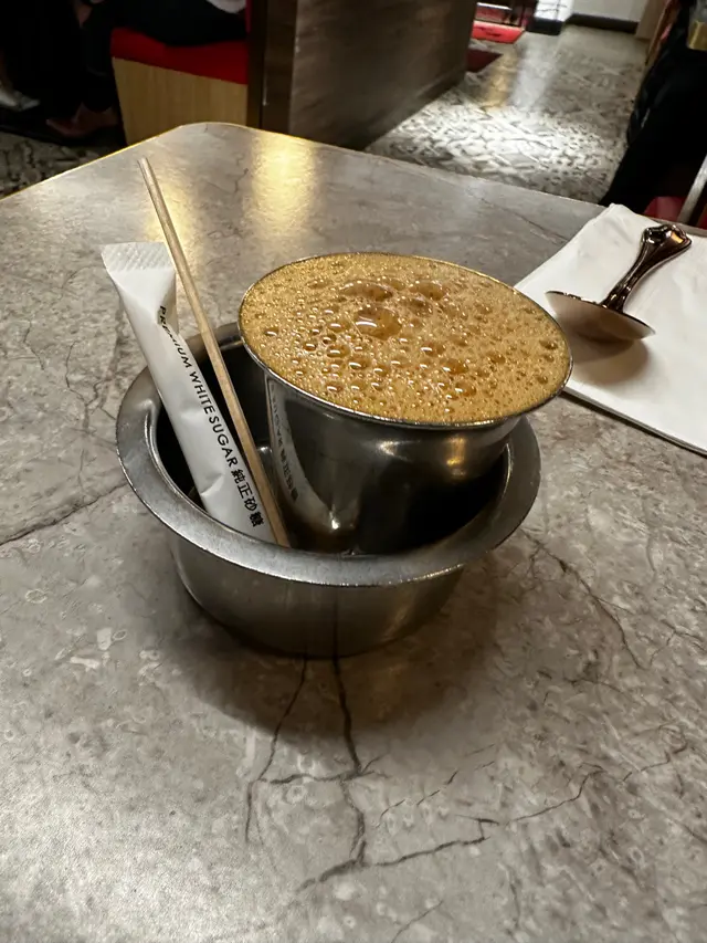 見到一間好得意嘅印度菜。原來係屺立60年正宗南印度過江龍。有好多分店。今次專程來打卡一條很長很長的Butter Dosa。試試印度香料的口感。牛油薄煎餅 Butter Dosa抹上香濃牛油外皮酥脆的薄煎餅。好長好長打卡之選 。好重牛油香味, 煎餅極之香脆,食到停唔到口。淨食已經好好味。仲有四種唔同醬料 各有風味:椰子,薄荷,蕃茄醬與香辣豆醬。雞肉棒棒糖Chicken Lollypop外酥內嫩的雞腿棒棒糖,紅辣椒醬不太辣與香料很配合。外皮香脆,肉質嫩滑,再配印度特製甜酸醬汁,非常惹味。Bamboo Biriyani Mutton羊肉竹筒印度飯米飯吸收了羊肉的鮮香與香料的精華,竹筒的蒸煮方式讓香氣更集中,羊肉肉質更軟嫩入味。上菜時服務員會在你面前將竹筒飯倒出嚟。香氣飄出來。黃油雞咖喱 Butter Chicken Masala濃郁的咖哩帶番茄,奶油醬汁。包裹著嫩滑雞肉,是印度咖喱中的經典。入口香濃。搭配印度大蒜烤餅 Garlic Naan烤得微焦的大蒜烤餅香氣撲鼻,內層柔軟,沾咖喱吃更是絕配。芒果印度奶昔 Mango Lassi芒果的果香與乳酪的酸甜完美融合。好重芒果味,解辣一流。馬薩拉茶 Masala Tea充滿香料的奶茶散發著肉桂、豆蔻與薑的氣息,茶香濃厚,奶味柔滑,味道非常特別。…查看更多